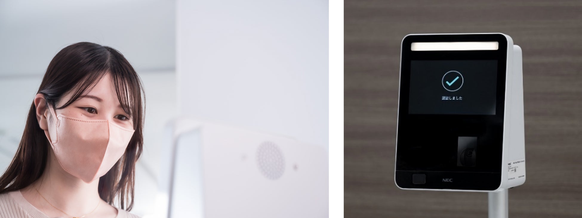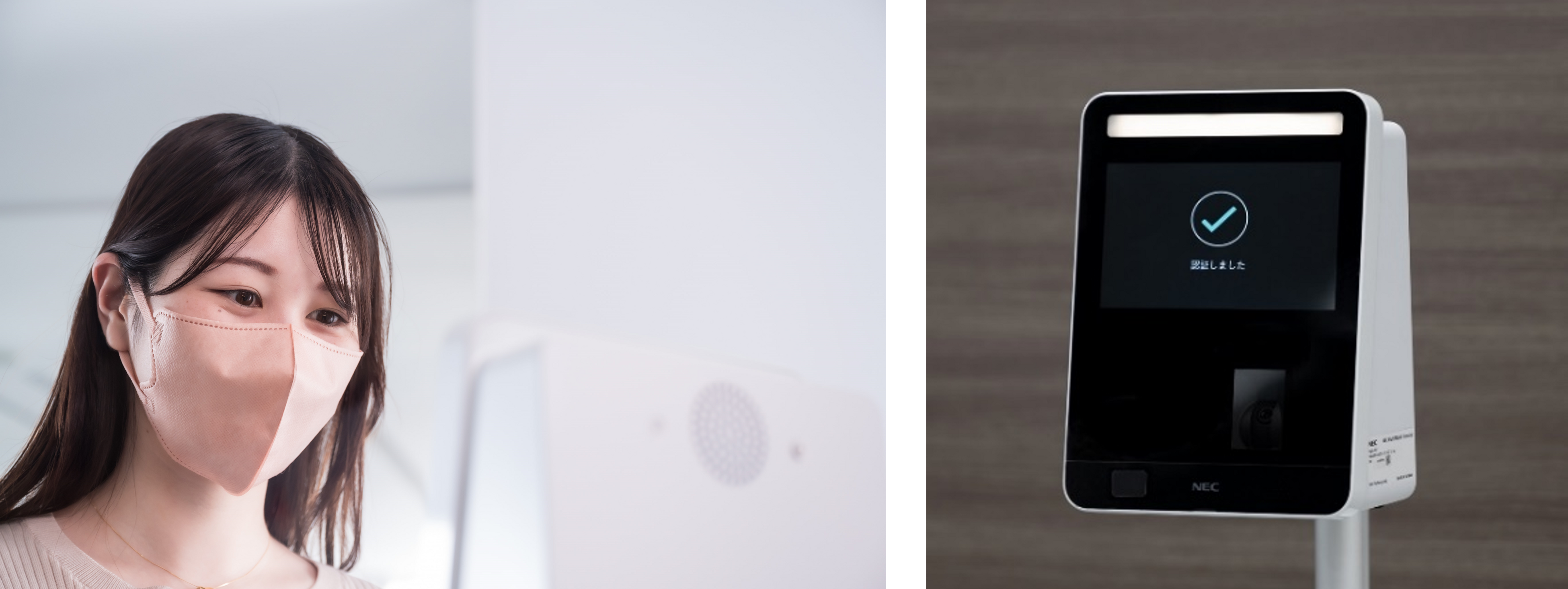 顔を向けるだけで誤認証率(他人を本人と誤って受け入れる確率)100億分の1以下の高精度な認証が即時に可能。マスクやゴーグル、手袋などを着用していても認証することができ、クリーンルームでの入退管理においても高いセキュリティと利便性を両立する運用を実現します。これにより従来から生体認証が活用されてきた用途に加え、パスワードなどとの併用が求められる厳格な入退場管理や決済などにおいても、他の認証の仕組みとの併用を行うことなく、本ソリューション単体でご利用いただくことが可能です。
