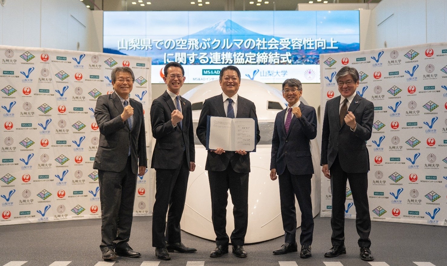 山梨県・日本航空・MS&ADインターリスク総研・山梨大学・九州大学の5者が空飛ぶクルマの社会受容性向上に関する連携協定を締結