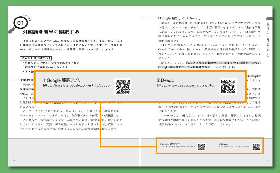 電子版はURLをクリック・紙書籍はQRコードの読み取りで、本書内で紹介された「使えるサイト・アプリ」はすぐに確認できるので、読みながら実践できます。