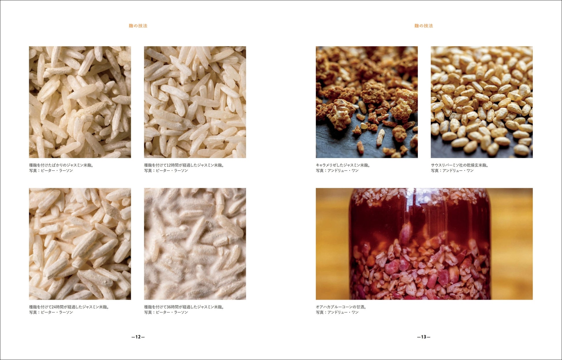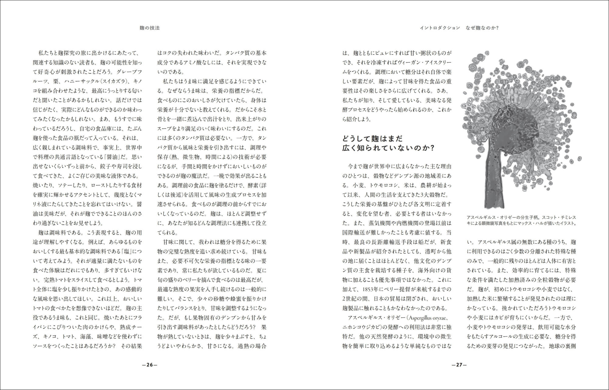 1章 麹とは?/2章 麹の共通語づくり/3章 風味づくりのロードマップ/4章 麹の育て方/5章 麹づくりの幅を広げる/6章 STE:麹を素早く利用する/7章 アミノペースト/8章 アミノソース/9章 アルコールと酢/10章 熟成肉とシャルキュトリ/11章 乳製品と卵/12章 野菜/13章 菓子とパンへの応用