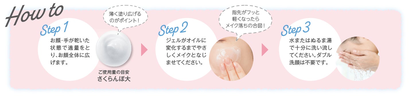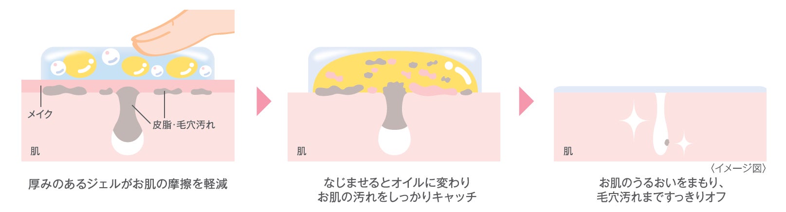 ② 新感覚!ジェルがオイルに変化して、毛穴汚れ・濃いメイクも素早くオフ