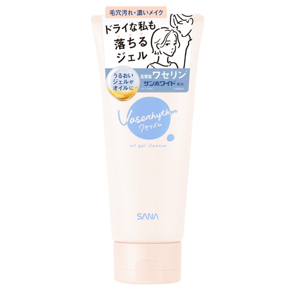 「サナ ワセリズム オイルジェルクレンズ」は、お肌になじませる際にジェルがオイルに変化する転相タイプで、それぞれのいいとこ取りをした新感覚のクレンジングです。高精製ワセリンサンホワイト(R)※1をナノ化配合したナノテク処方を採用。3種のセラミド※2、ヒアルロン酸Naといった保湿成分を含んだやわらかいジェルの中に、メイク・毛穴汚れを落とすオイルを贅沢含有。お肌になじませるとジェルがオイルに変化し、ゆらぎやすいお肌のうるおいを守りながら素早くするっと汚れを落とします。ウォータープルーフのメイクも落とせて、ダブル洗顔不要。まつエクにも使えます。