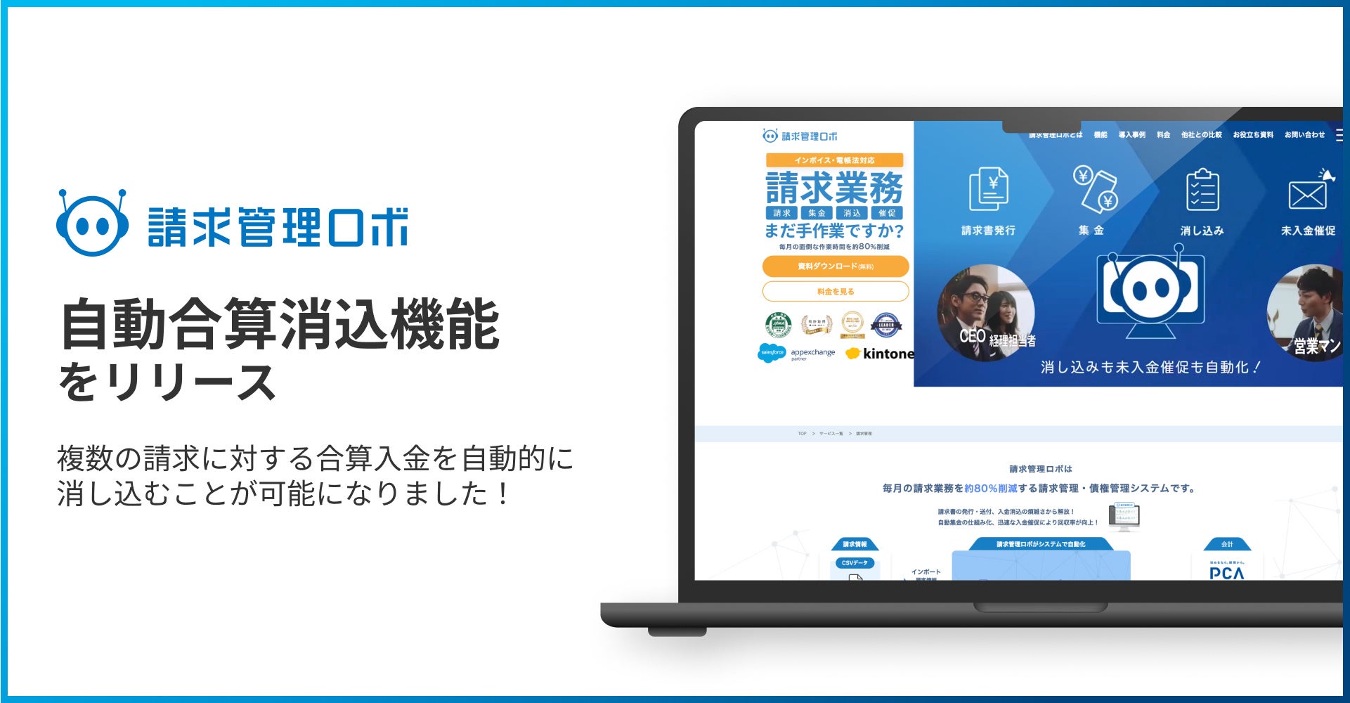 請求管理ロボ、合算入金の自動消込を実現する「自動合算消込機能」をリリース