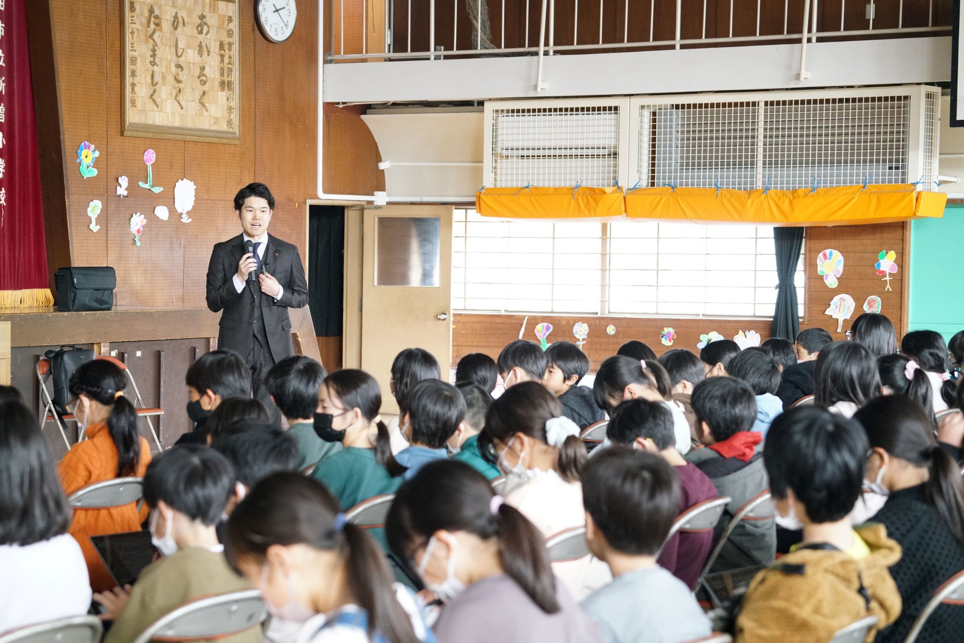 アチーブメント株式会社(所在地:東京都江東区、代表取締役会長兼社長:青木仁志、以下「弊社」)は、2023年より新たな産官学連携の取り組みとして埼玉県にある戸田市教育委員会との教育プロジェクトを実施しています。9月3日(火)に、戸田市立美谷本小学校の5年生に向けて、新規事業立案にも携わる若手社員が特別授業を開催。日本の子どもたちは自己肯定感が低い傾向にあるなか、夢を育み自分の可能性に挑戦し続けることの大切さを自身が携わってきた事業の経験をもとにお伝えいたします。