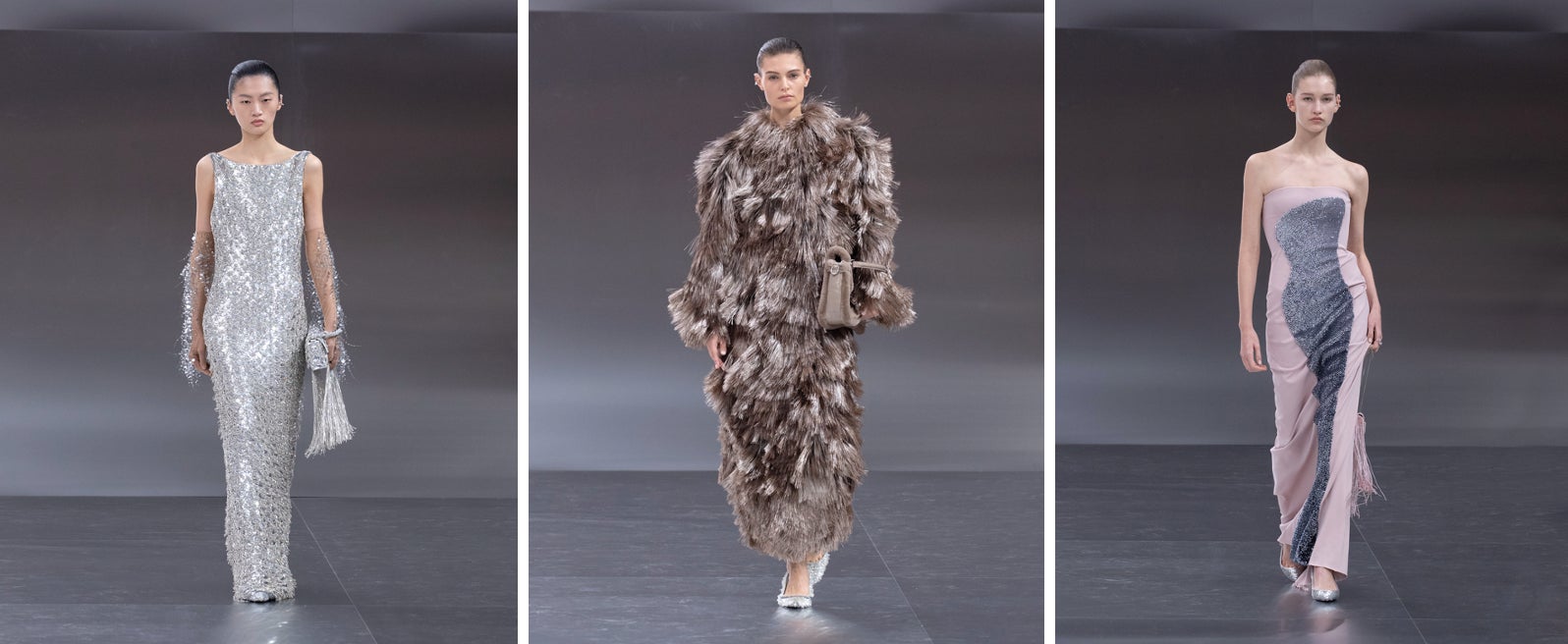 今シーズンのクチュールコレクションでは、詩情と現実との間で交わされる対話が続いています。「コスチューム」を避けて、実用主義を謳う本コレクションは、刺繍職人から仕立て職人、パタンナーからレザー職人、ドレスメーカーからファー職人に至るまで、フェンディ アトリエの卓越した職人技を駆使して、シームレスに実現された合成作品とも言えます。クチュールを身につける人に対するフェンディのアプローチは、その人の人間性を再認識させてあげることです。何故なら彼らは単に「何か」ではなく、「誰か」であるからです。