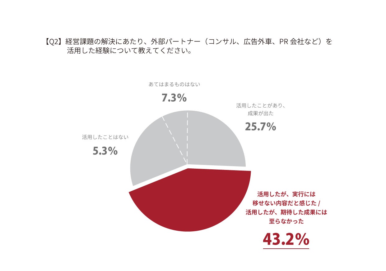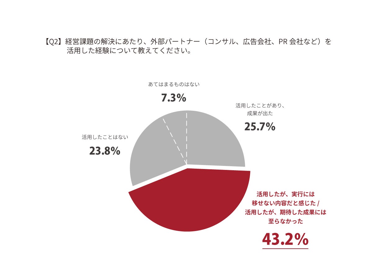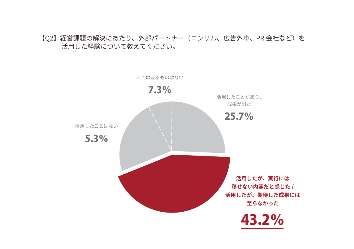 外部企業の支援は、結果机上の空論や期待した成果には至らないと答えた方は約40%も感じている。