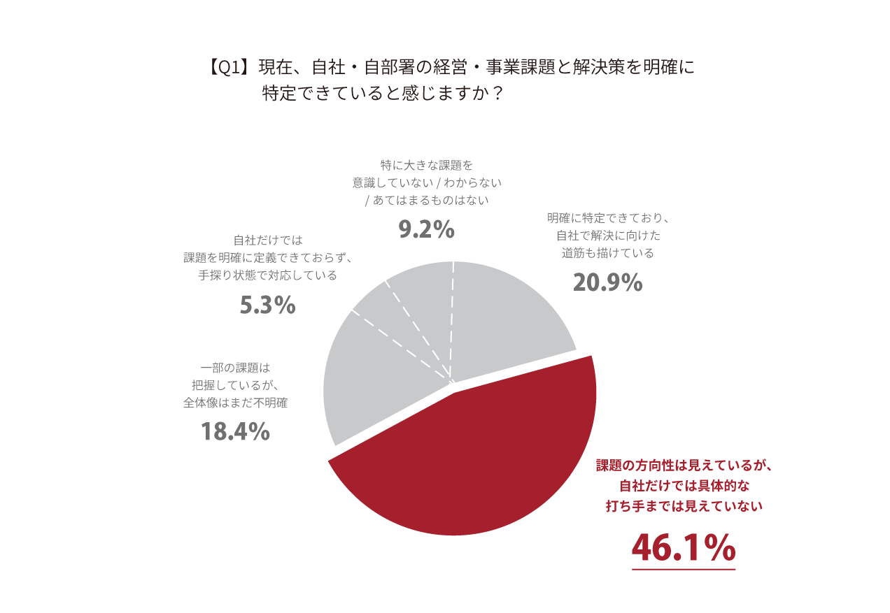 以上の調査から、導かれた課題設定が曖昧なまま意思決定が行われ、戦略が現場に翻訳されず「描くだけ」で止まってしまう、そして「戦略と実行の断絶」を埋められていないという現代企業における構造的な課題が浮き彫りとなりました。