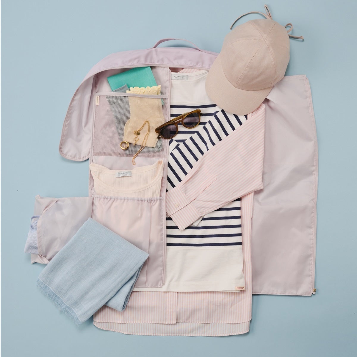 シワを防ぎつつ、インナーや靴下などの小物も複数ポケットでまとめて収納できます。