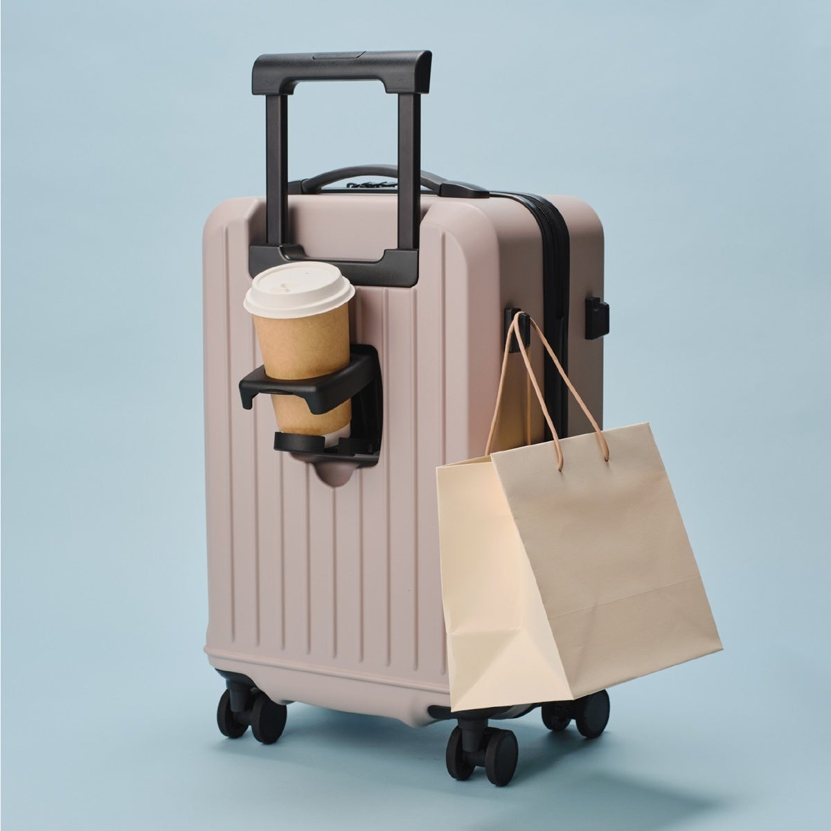 背面ドリンクホルダーやサイド簡易フック、ストッパー付きキャスターなど充実な仕様に加え、TSロック対応、機内持ち込み可能サイズ※で、出張や旅行をスマートにサポートします。