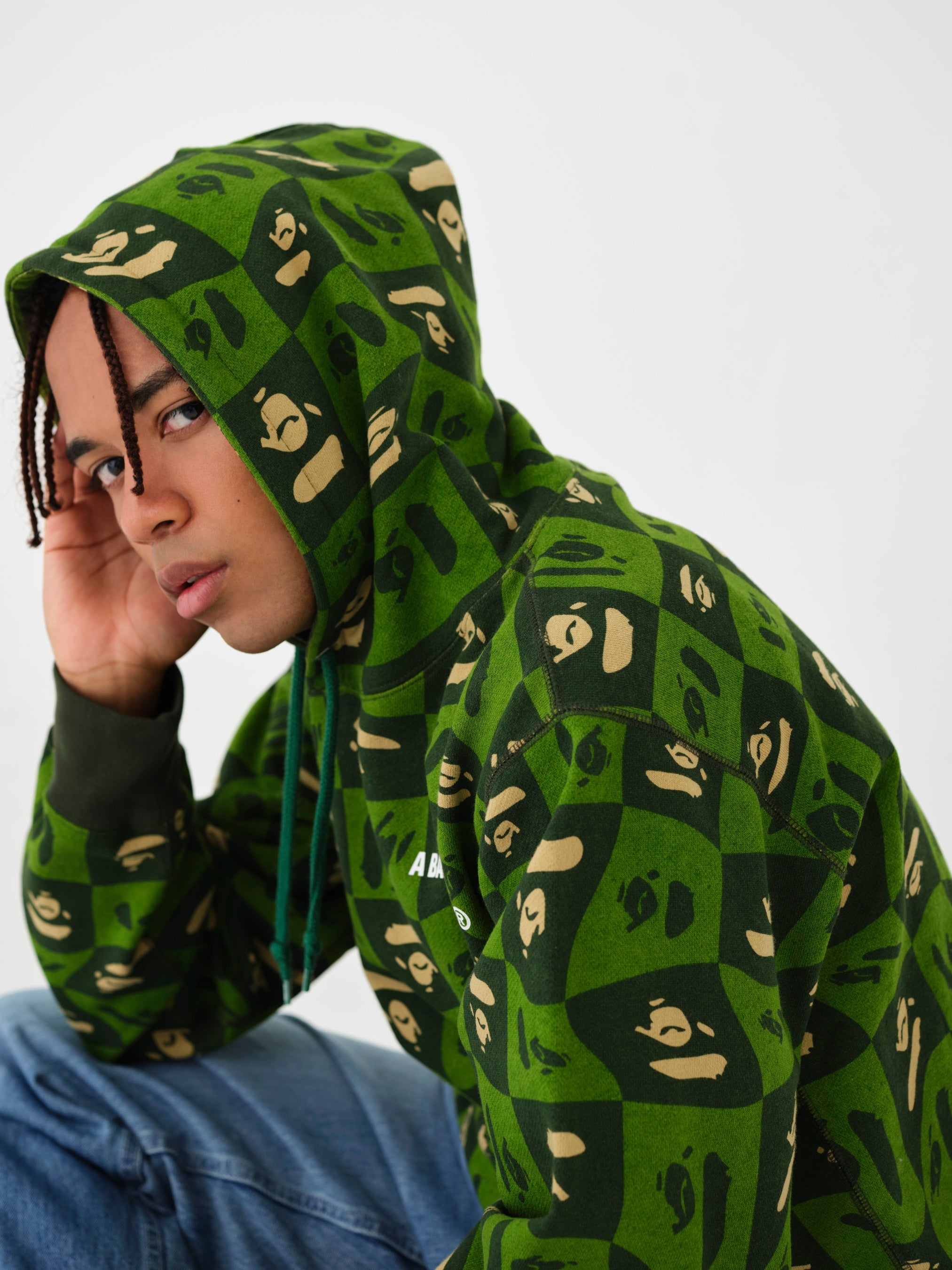 「カレッジ」シリーズからは、COLOR CAMOより定番カラーに加えて、2000年代に使用していたグリーンとブラックを復刻。クレイジー配色のジップアップフーディーやCRYSTAL STONEでBAPE®の文字を象ったTシャツなどに落とし込むことで、クラシックなムードを漂わせています。また、特大のGIANT APE HEADを配したブルゾンやスエットパンツをはじめ、クラシックなBAPE®ロゴを配したヴァーシティジャケット、フロントにMAD FACEのツイルパッチを施したアイスホッケーシャツなど、ブランドが数々のマイルストーンを刻んだ2000年代を彷彿とさせるラインアップが完成しました。