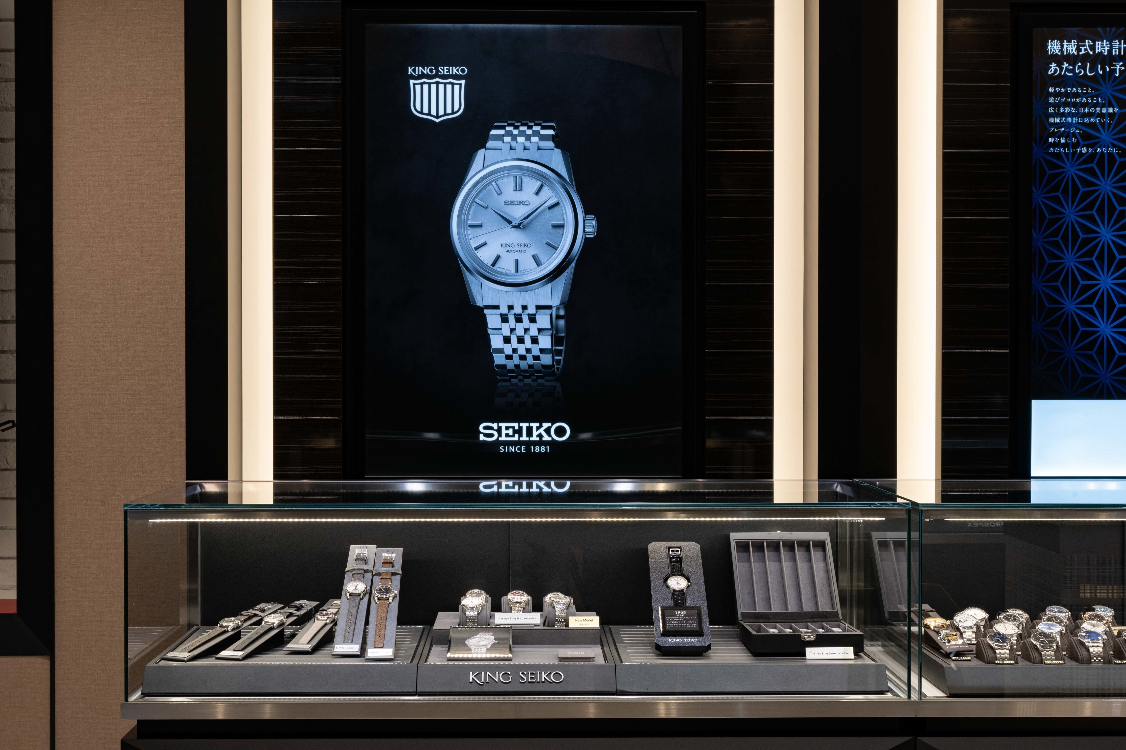 また、話題の新モデルを発売前に手に取り十分に吟味する事が可能です。2月18日(金)より全世界のセイコーブティックにて先行発売を開始する新生<キングセイコー>は、発売前に製品や専用ストラップのすべてを手に取りご確認いただけます。取扱ブランドの世界観を体感していただくイベントの開催も定期的に計画しており、大阪心斎橋の中心からセイコーブランドの魅力を発信してまいります。