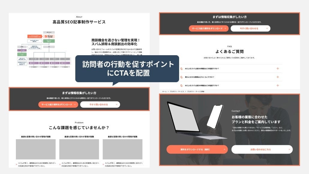 最適なCTA配置とSEO対策:ポップアップCTA機能を組み込み、訪問者の行動を自然に誘導。SEO最適化によりリード獲得を強化