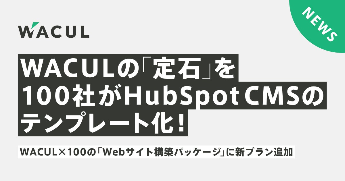 WACUL×100の「Webサイト構築パッケージ」に新プランを追加!WACULの「定石」を、100社がHubSpot CMSで実装する5つのテンプレートが新登場