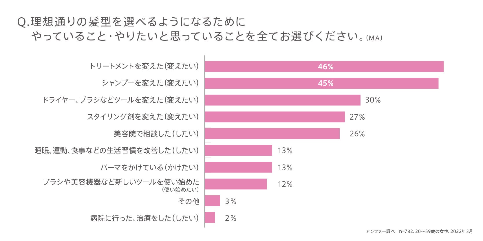 理想通りの髪型を選べるようになるためには「トリートメントを変えた」が最多