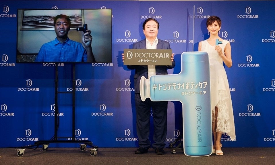 2022年7月13日(水)から随時放送開始予定の新CMがお披露目され、本CMに出演の米倉涼子さんがブランドアンバサダーとして登壇しました。軽量なのにパワフルな【エクサガン ハイパー】の魅力について語り、さらに、現役時代からドクターエア製品を愛用している元大リーガーでドクターエアのスペシャルアドバイザー、上原浩治さんがサプライズでオンライン登壇し、アスリートが教える【エクサガン ハイパー】活用法を紹介しました。- 当日レポート