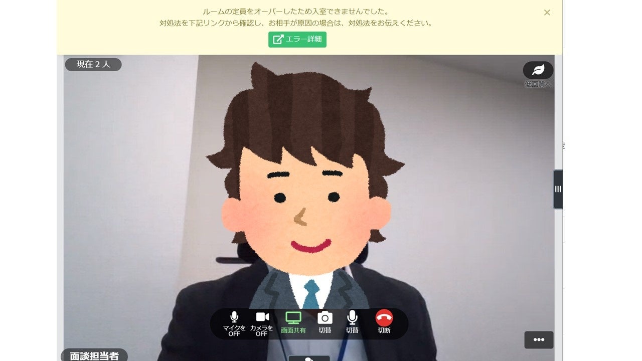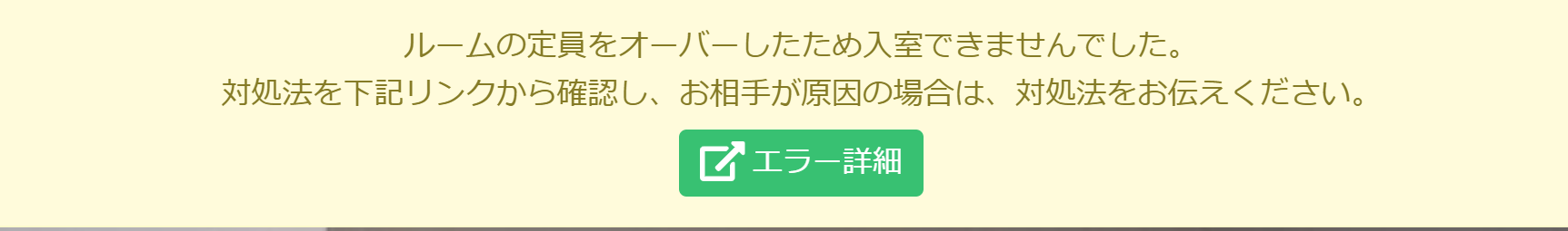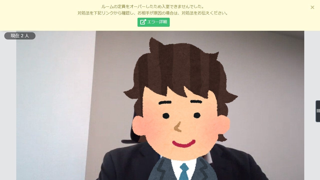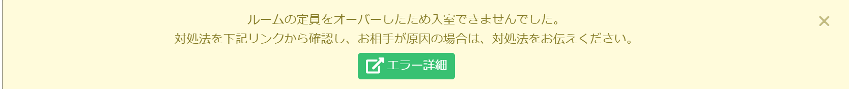 SOKUMENでは面接を1対1での実施と多人数での説明会や面接官が複数名の場合とでルーム設定を切り替える事が可能です。今回の機能追加で設定した人数以上の入室があった際に面接官側画面に定員オーバーの通知を表示させるようにしました。エラー内容を把握し素早く解消することでスムーズに面接を実施出来るようになります。