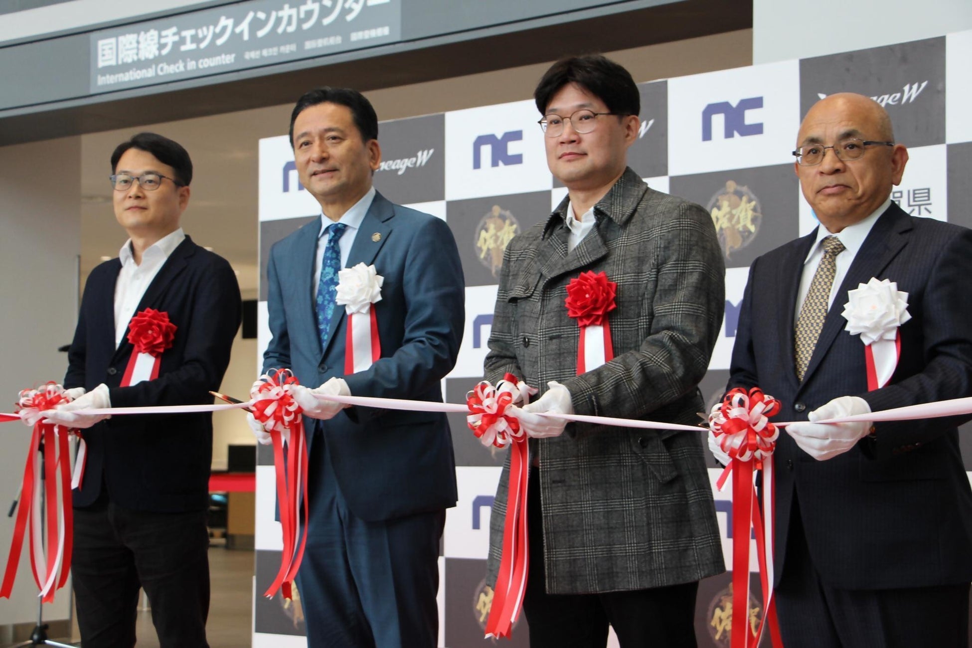 この度、佐賀県内でのコラボイベントの開催に先立ち、NCSOFTの日本支社であるNC Japan 事業統括本部長 金 埈範(キム ジュンボム) 氏、同管理統括本部長の李 睿彬(イ イェビン) 氏をお招きしてオープニングセレモニーを実施しました。