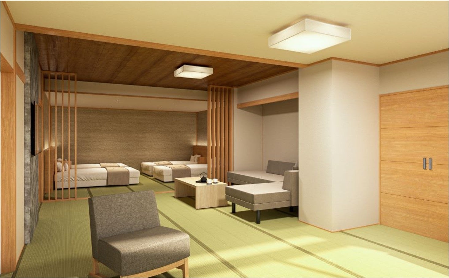 客室棟13階に位置し、加賀の街並みを眼下に見下ろす絶好のロケーションを最大限に活かした空間へ生まれ変わります。