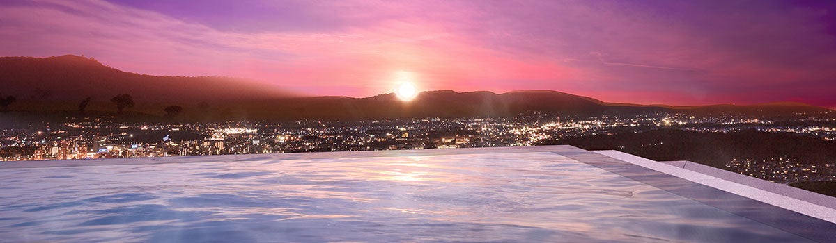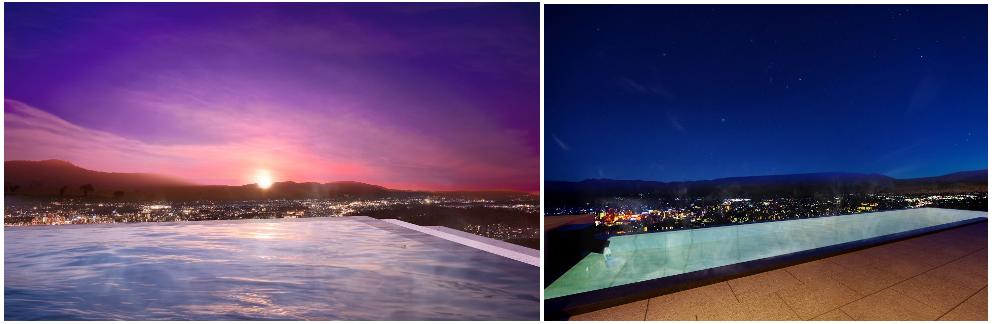 陽光降り注ぐ日中から加賀の街並みが夕暮れに染まる時間、そして街の灯りが灯る夜など、時間を変えてダイナミックな風景と共に、高温の湯が毎日60トンも注ぎ込まれる、 Premium 山下家の湯をご堪能ください