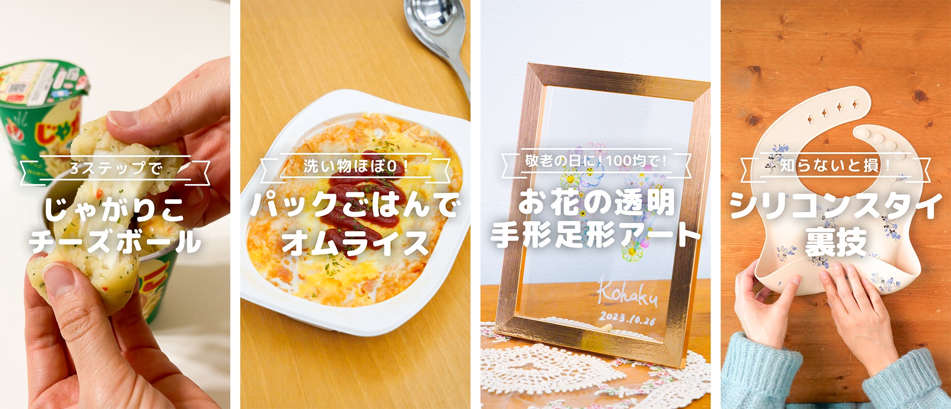 instagramは8,221件の投稿*、YouTubeは3,859本の動画*を配信中で、自社制作のオリジナル動画を中心に、インフルエンサーコンテンツも取り入れ、子育てファミリーに支持されるアカウントに成長しています。ちょっとした工夫で調理が楽になるレシピや家事テクニック、空き容器や100均アイテムなど身近なものを活用した斬新なアイデアなど、思わず見入ってしまう動画が豊富です。