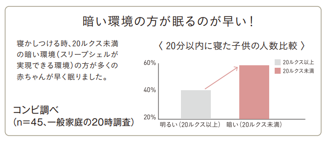スリープシェルがあることで眠りやすい暗さをつくり、明るいリビングでも寝かしつけがスムーズに行えます。