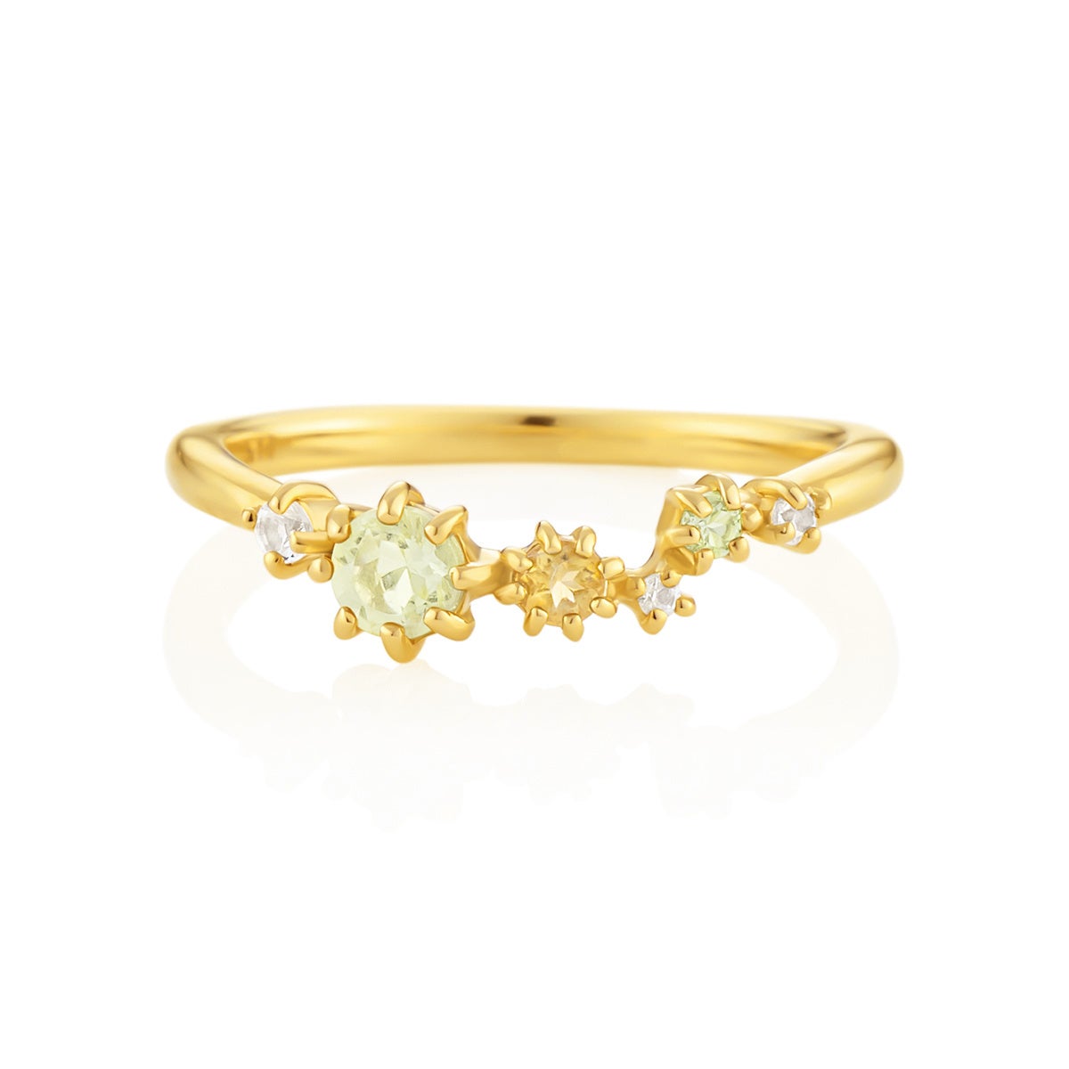 春の訪れを告げるミモザの花にインスパイアされたコレクションは柔らかなイエローとグリーンの色彩や、ふんわりと咲くミモザのシルエットを、繊細なデザインや天然石で表現しました。