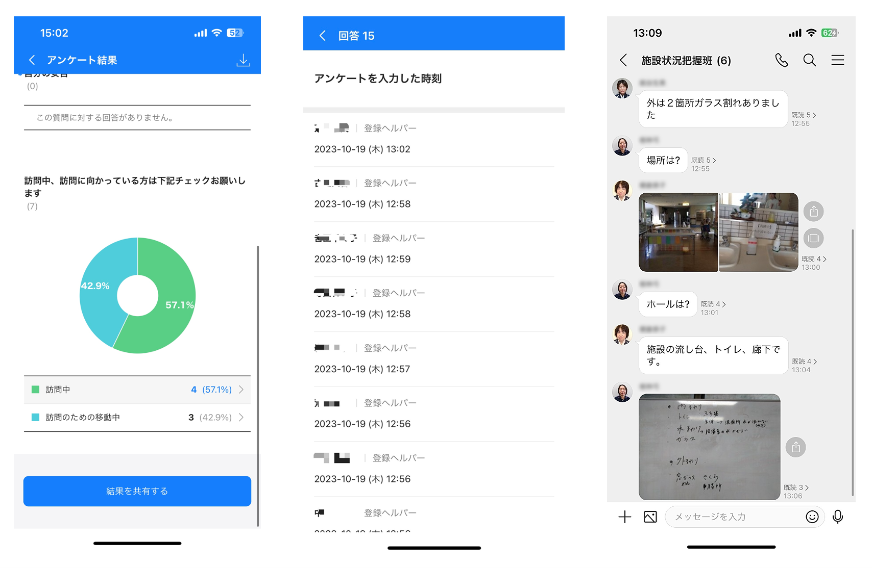 介護の現場におけるコミュニケーション基盤を確立し、実運用に沿った運用で半日から1日かかっていた安否確認を約17分に短縮