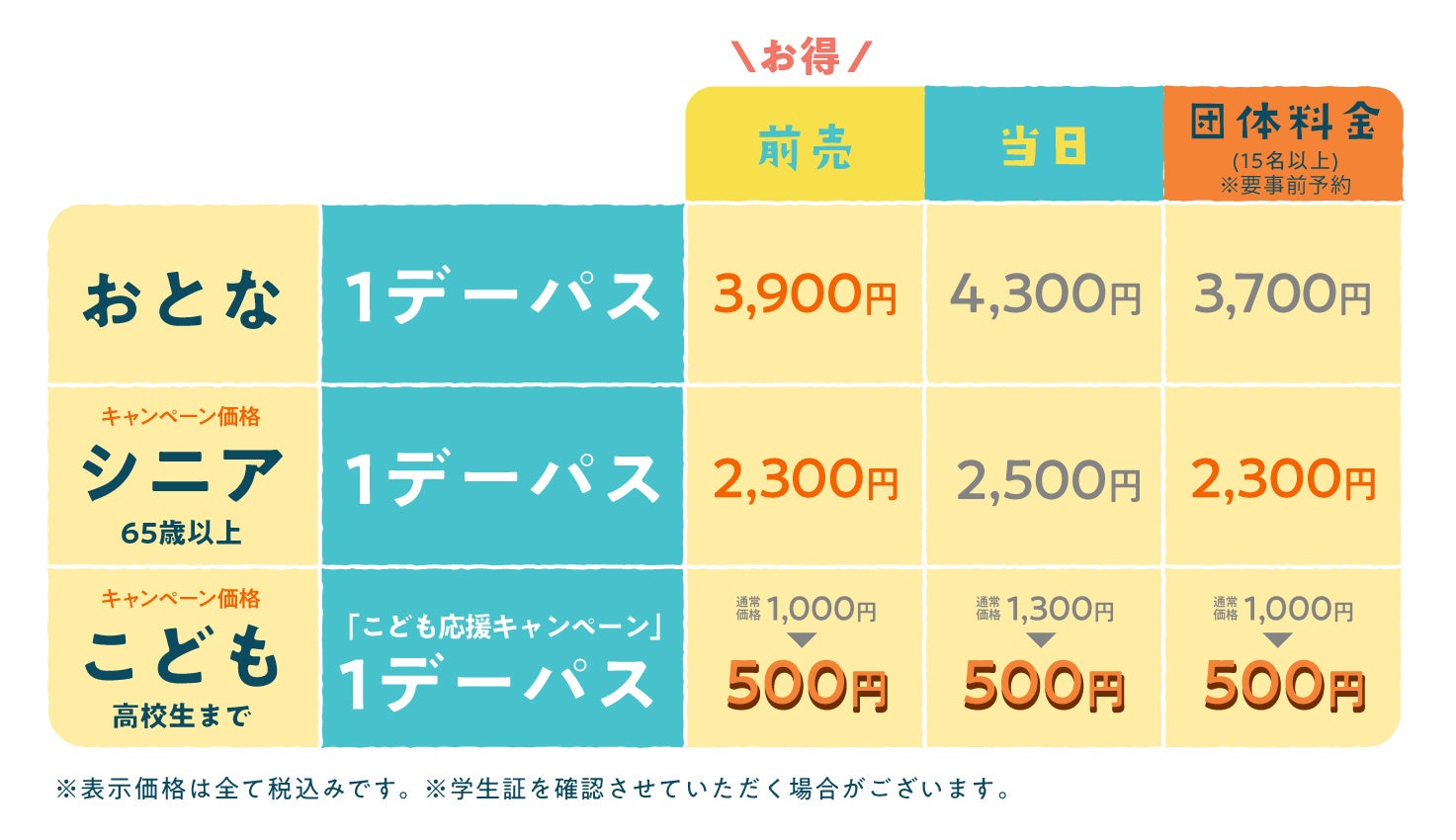 ■販売価格:こども1デーパス500円(税込)※中高生もこども料金でお楽しみいただけます。