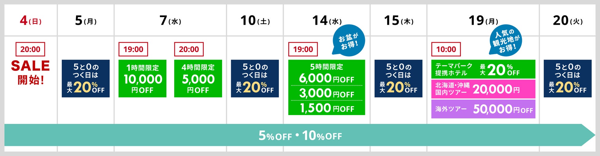 6月14日(水)5時間限定利用・お盆期間に利用できる最大6,000円オフクーポン