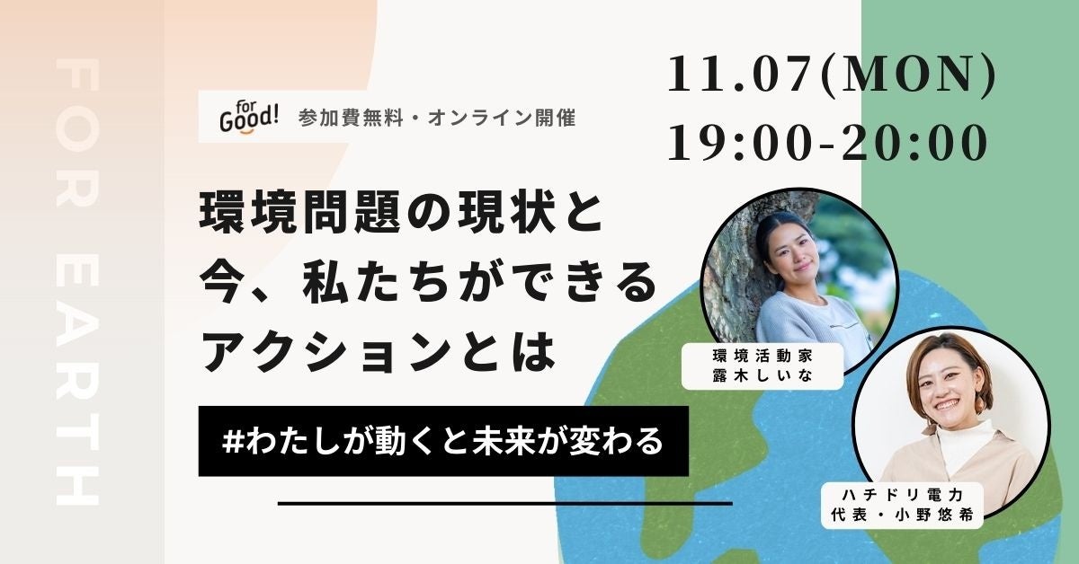 【11/07(月)開催イベント】環境活動家・露木しいなと、ハチドリ電力代表・小野悠希が登壇決定!〜環境問題の現状と今できるアクションとは〜
