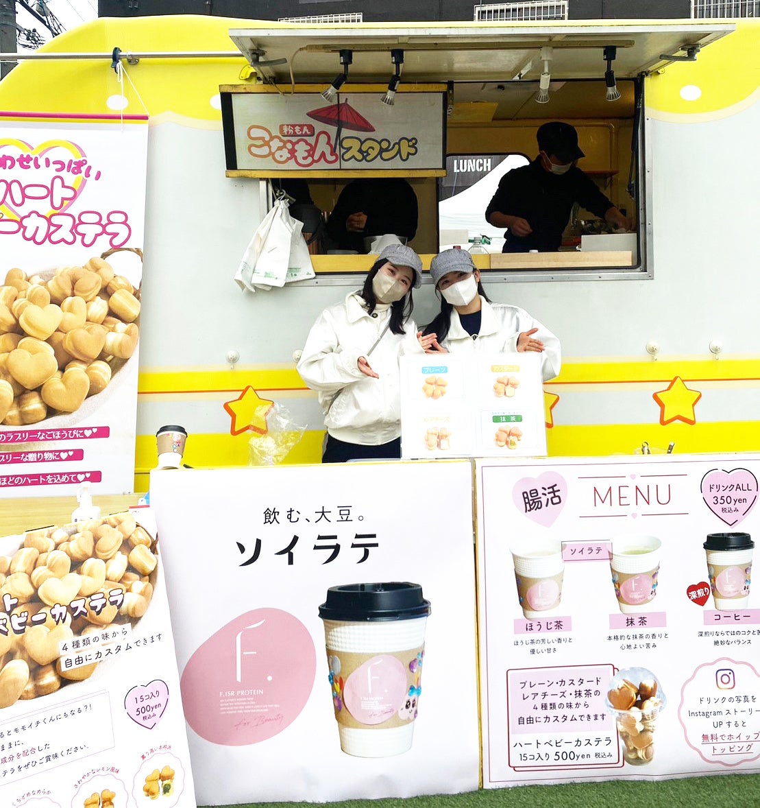 イベントブースではキッチンカーとコラボし、腸内細菌バランスを整える独自成分を配合した腸活メニュー「腸ケア ベビーカステラ」「M’s Beauty Coffee」「飲む大豆 ソイラテ」を提供し、150名を超える方々にご購入をいただくことができました。また、Z世代メンバーによるステージイベント等も実施し、ご来場いただいた方々に、楽しみながら肌の構造についての理解等を深めていただきました。