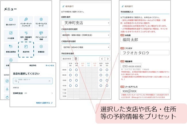 •顧客情報やアプリで選択した店舗情報を引き継ぐことで、氏名・住所等の予約者情報の入力不要で手続きできます。
