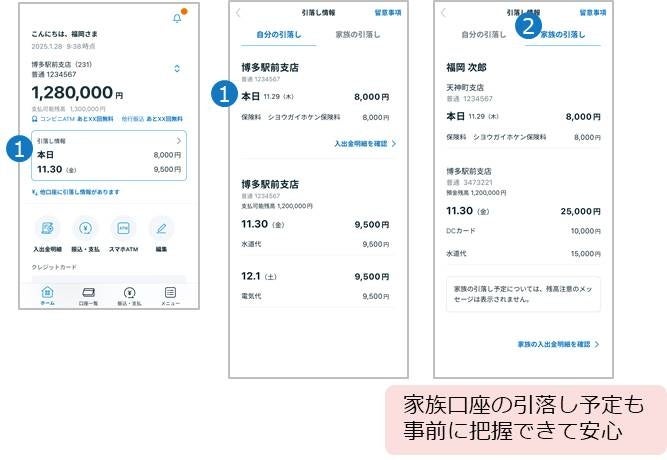 •家族口座照会機能で家族の口座を登録しているお客さまに表示されます。