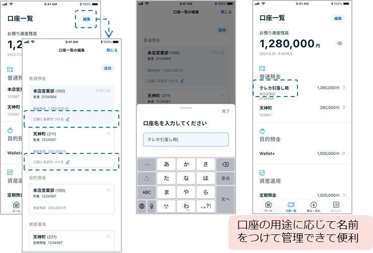 口座番号だけでは分かりづらいから、生活費や貯蓄など目的別に口座に名前をつけたい…… 。