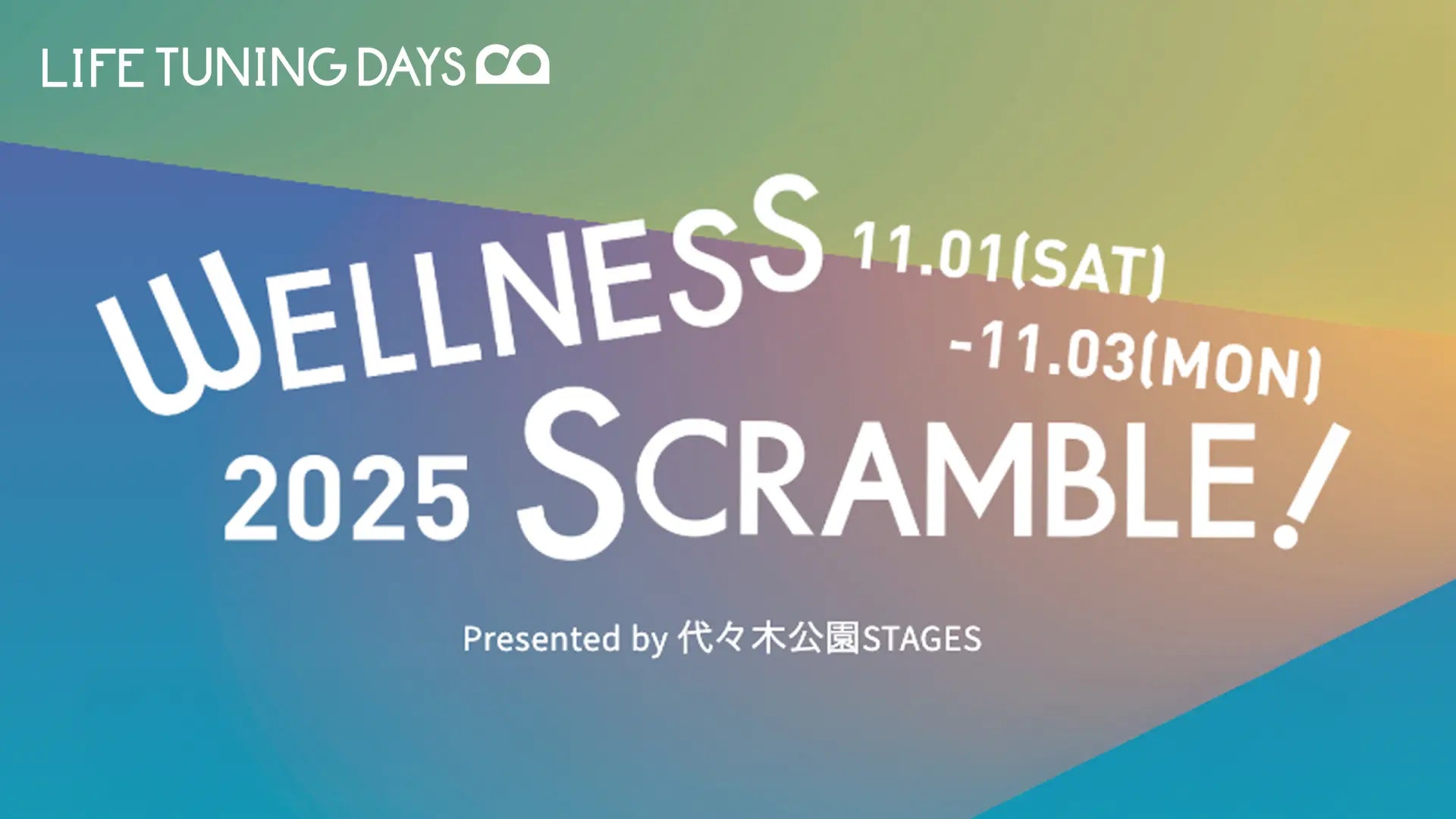 渋谷から広がる都市型ウェルビーイングの新潮流として、「LIFE TUNING DAYS WELLNESS SCRAMBLE! 2025 Presented by 代々木公園STAGES」を公式プログラムとして開催します。株式会社B-connectが展開するウェルネスブランド「LIFE TUNING DAYS(LTD)」と連携し、都市生活者の“こころとからだ”をチューニングする3日間を創出します。