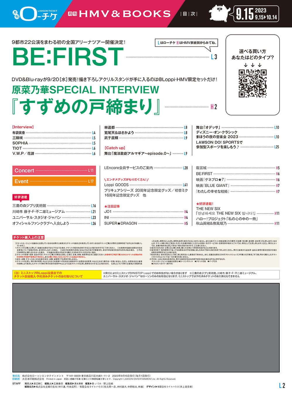 【本日発行】フリーペーパー『月刊ローチケ/月刊HMV&BOOKS』9月15日号の表紙・巻頭特集は「BE:FIRST」&「すずめの戸締まり」