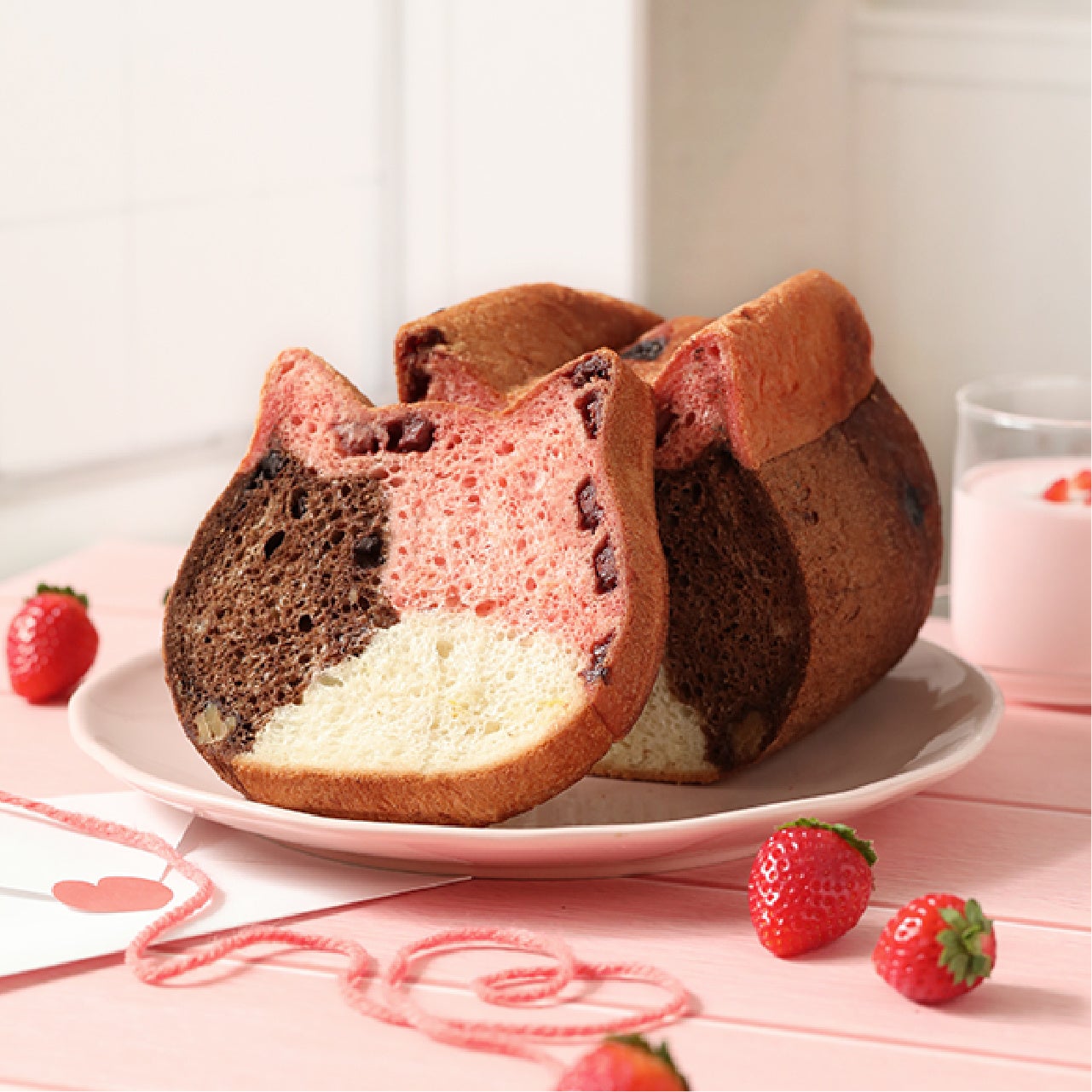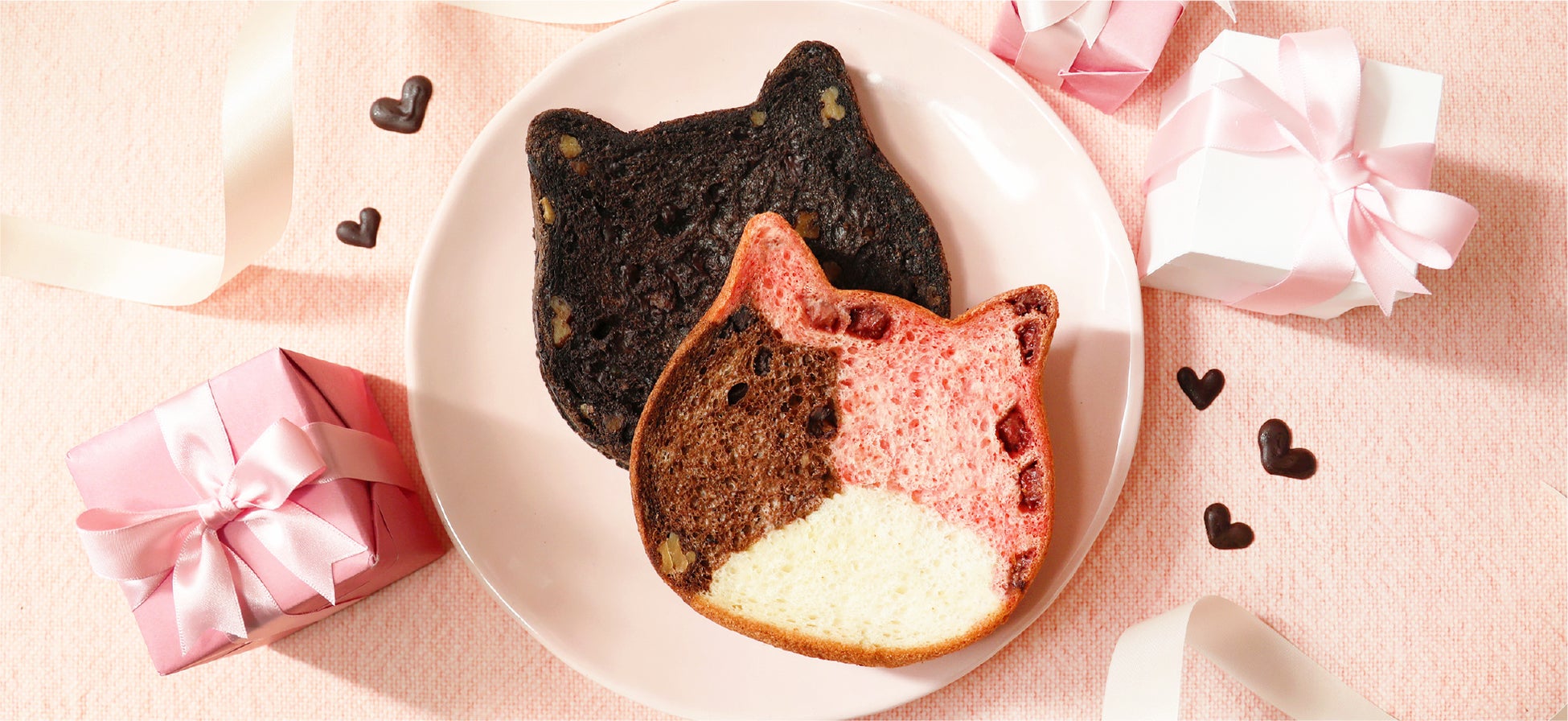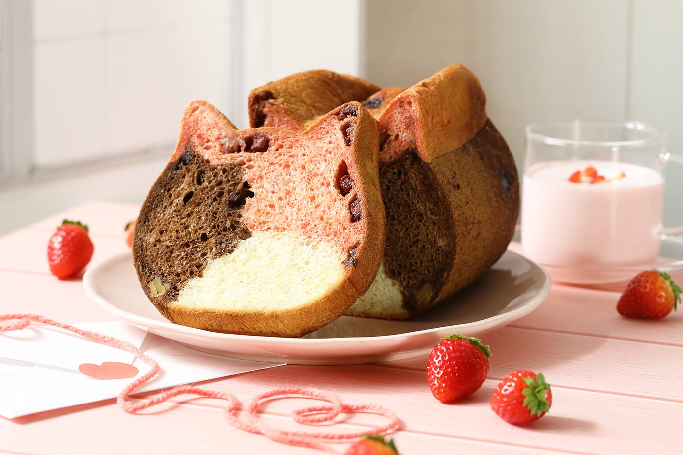 ビジュアルもピンクな可愛らしいねこねこ食パンで、バレンタインシーズンの食卓に彩りを加えてみてはいかがでしょうか。