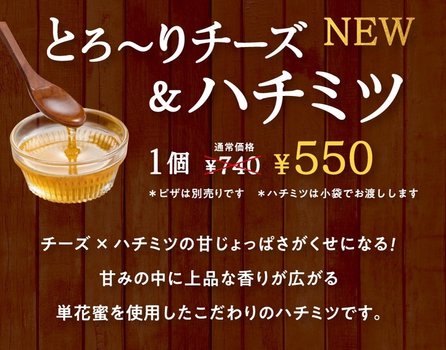 さらに、「とろ~りチーズ」にお得なハチミツ付きのセット価格もご用意しました。