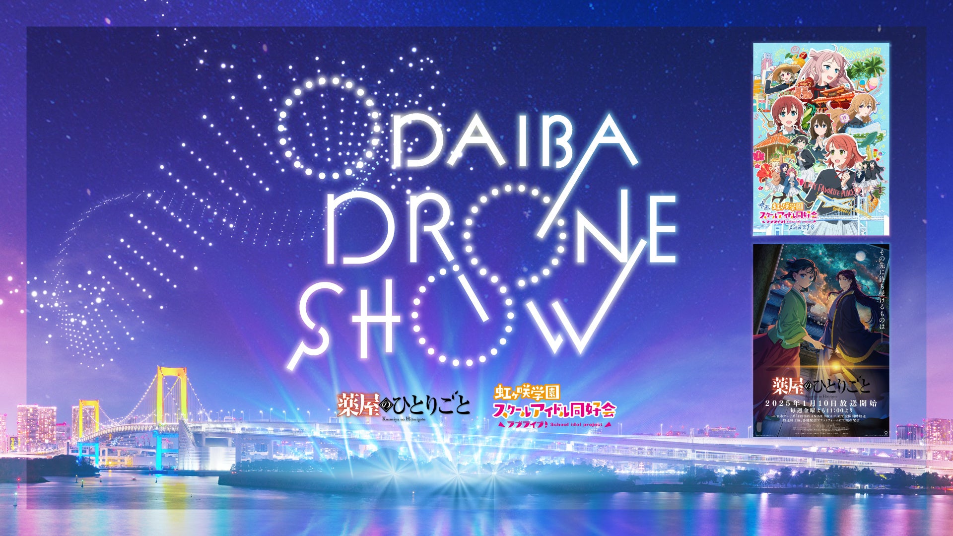 「ODAIBA DRONE SHOW 2024」は、Digital Innovation City協議会(DIC協議会)の実証事業として実施するもので、30台のサーチライトで煌びやかにライトアップされた第三台場(台場公園)の上空 で、500機のドローンで描かれたTVアニメ『薬屋のひとりごと』、「ラブライブ!虹ヶ咲学園スクールアイドル同好会」のコンテンツが、音楽に合わせてレインボーブリッジ前の夜空に展開します。 本事業は、レインボーブリッジ等の臨海副都心エリアの美しい夜景を活用して、世界に誇る日本アニメコンテンツと、ドローンショー やライトアップ等におけるデジタル技術とが連携した大規模空間演出が、地域の課題である「回遊性の向上」にむけた解決策である ことの有用性を、人流データなどの活用により実証するものです。