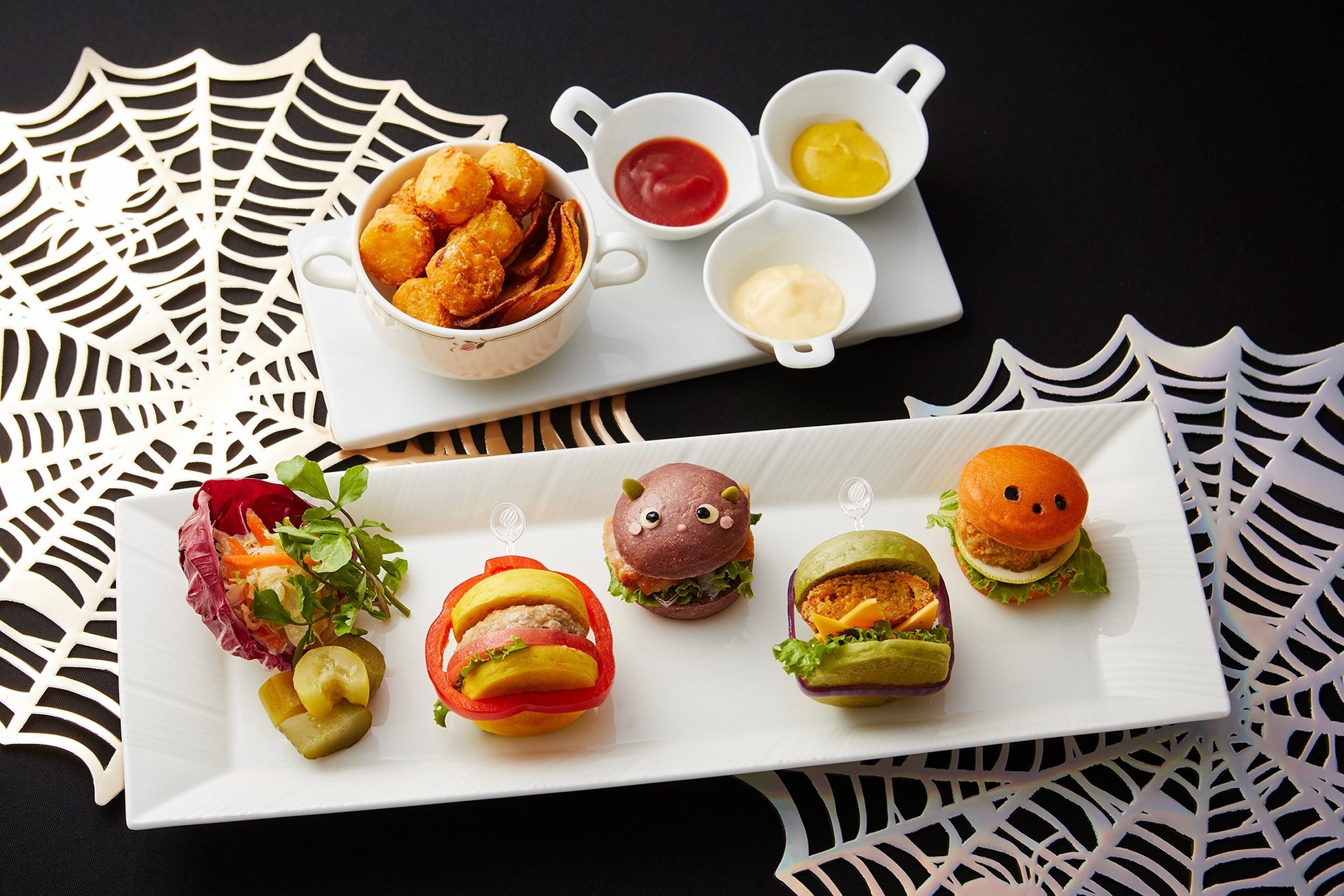 1階 ロビーラウンジ「フォンテーヌ」では、“おばけのパーティー”をテーマに、パティシエとシェフの遊び心あふれる「ハロウィンアフタヌーンティー」が登場!また、ハンバーガーの本場アメリカで誕生し、日本上陸後ジワジワと人気を集めているミニサイズのハンバーガー“スライダー”をハロウィンテイストで楽しむ「ハロウィンバーガー」を初めて販売いたします。また、地下1階 メインバー「ロイヤルスコッツ」とともに、ハロウィンの怪しげな雰囲気を演出するバーテンダーの創作カクテル「ハロウィンカクテルフェア」も開催。「ハロウィンバーガー」と「ハロウィンカクテルフェア」を合わせてお楽しみいただくと、写真映えも抜群です。