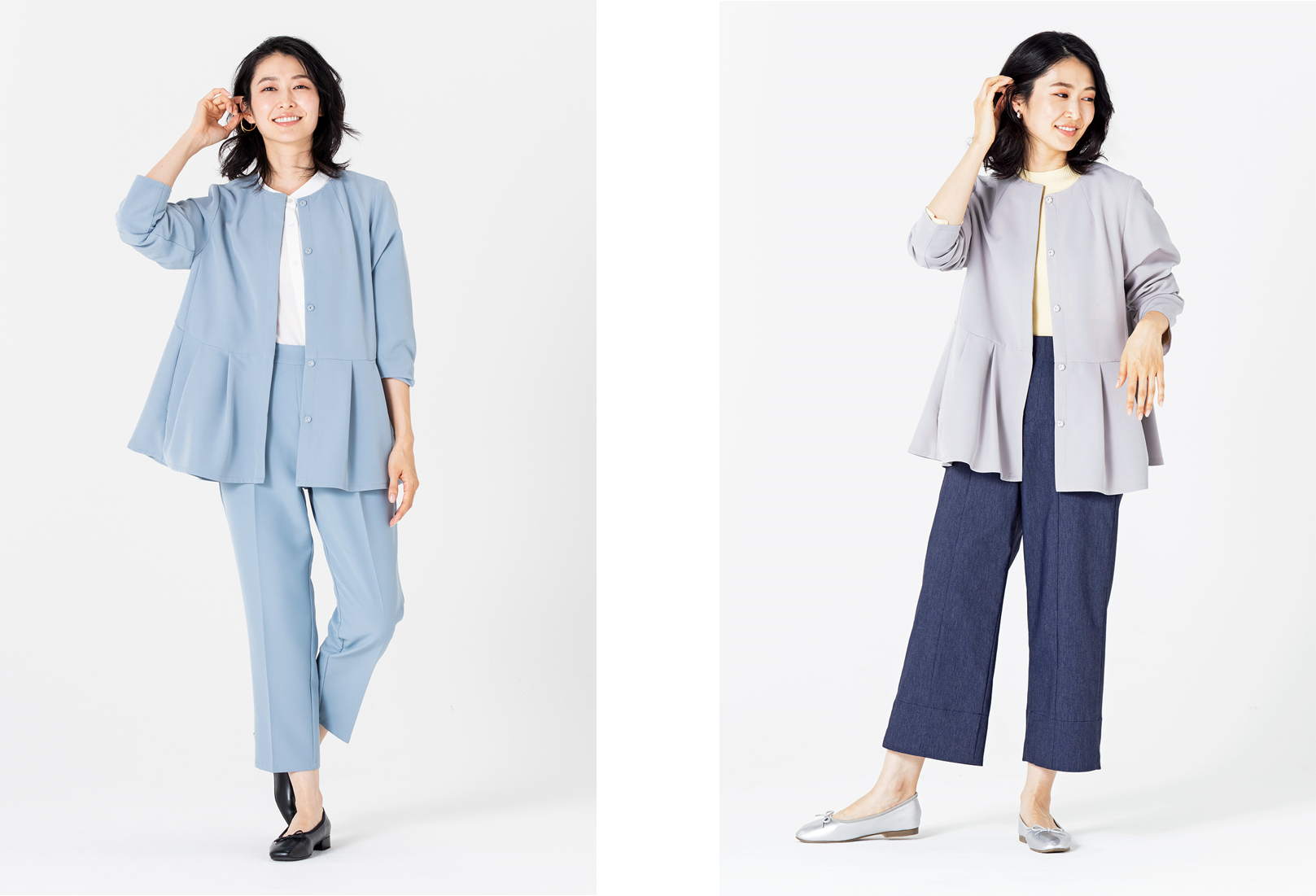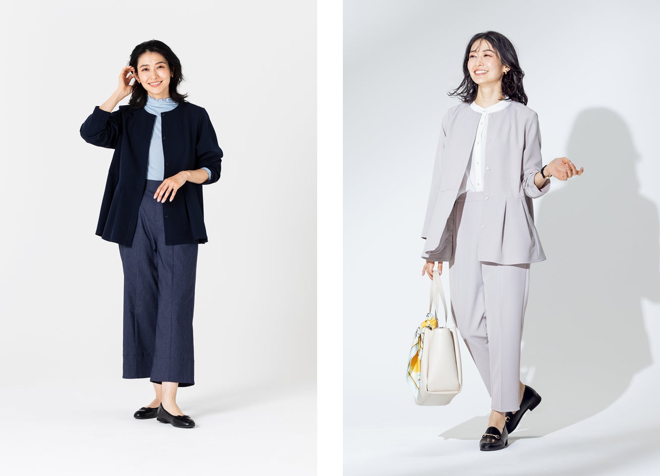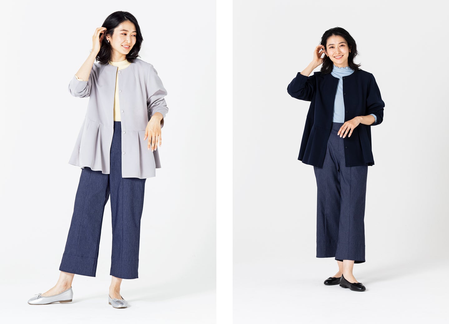 オケージョンシーンから日常使いまでマルチに活躍 大人気の【すごナノ撥水】よりパンツとセットで使えるペプラムジャケットが新登場