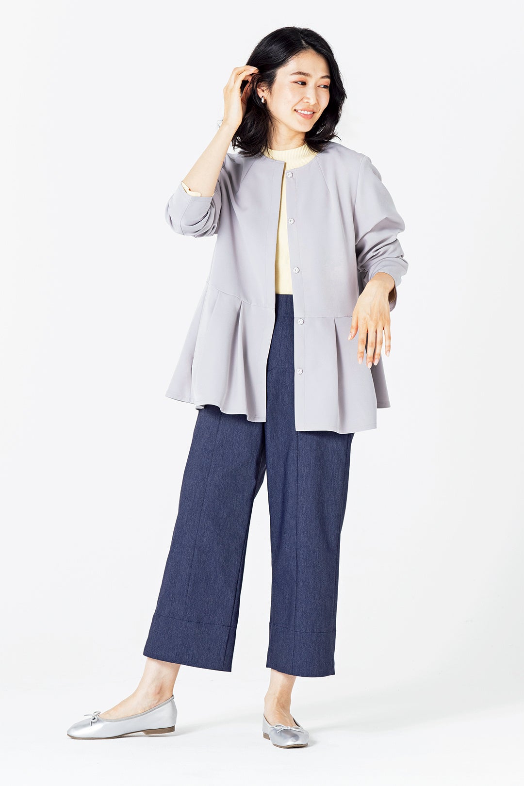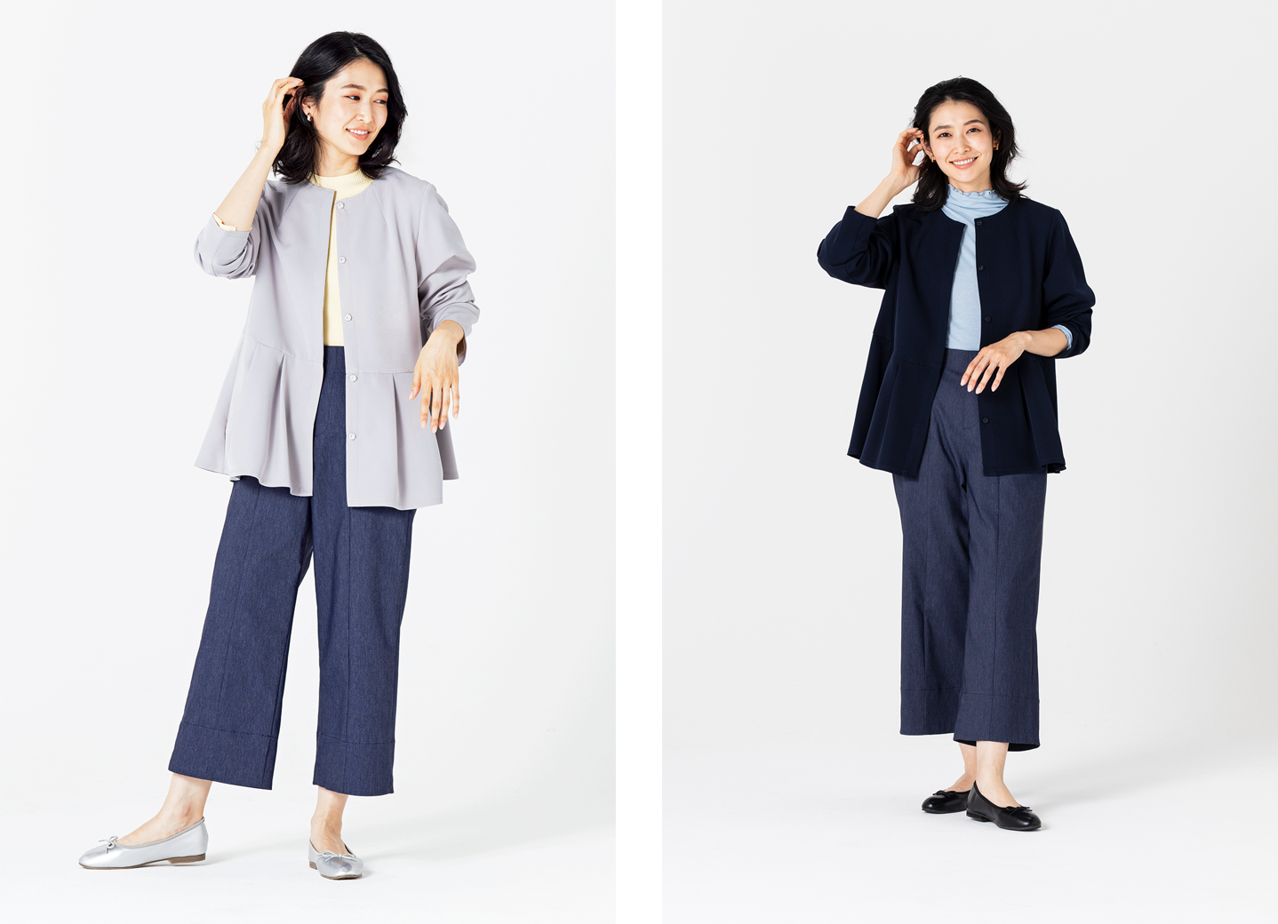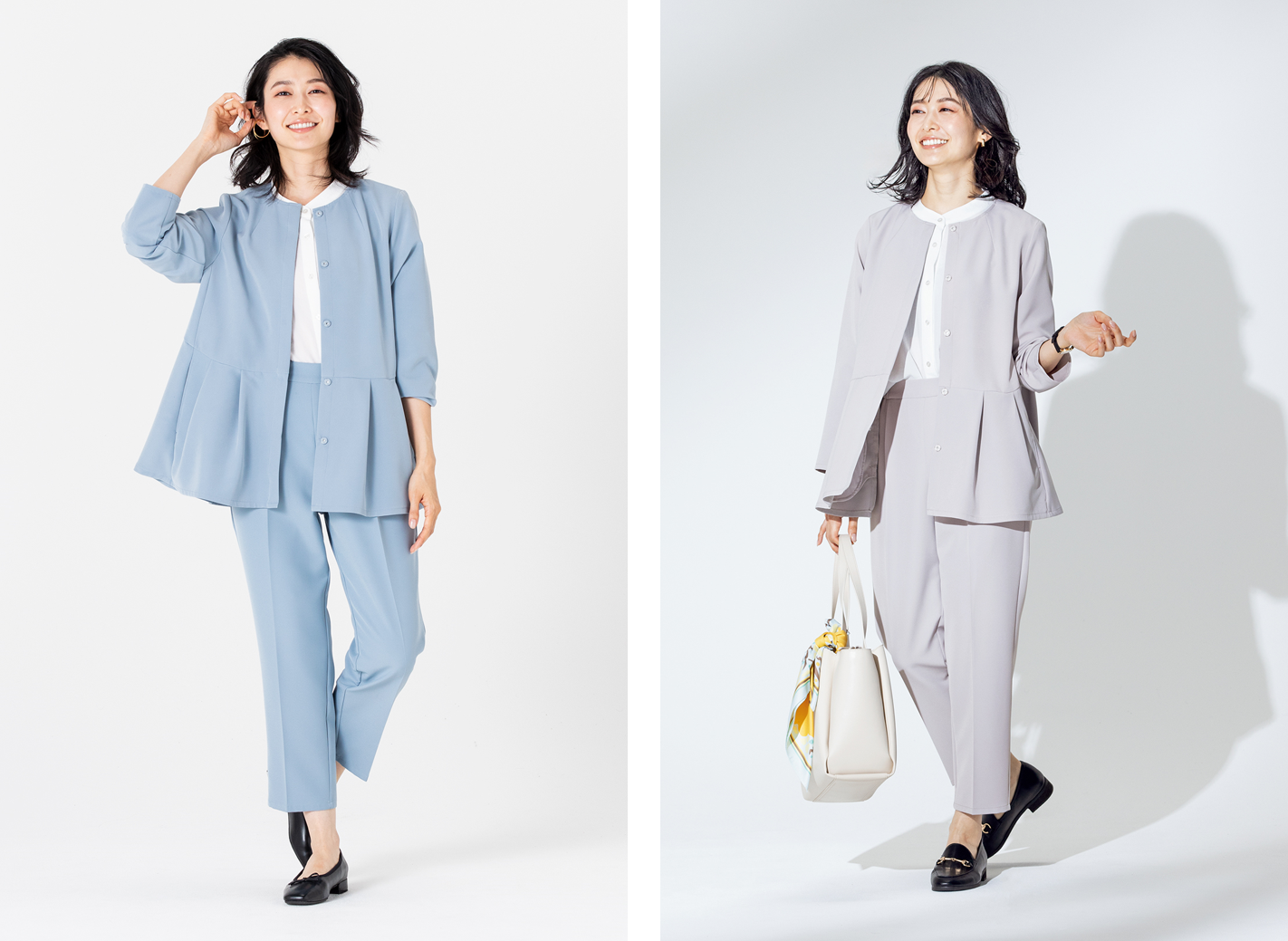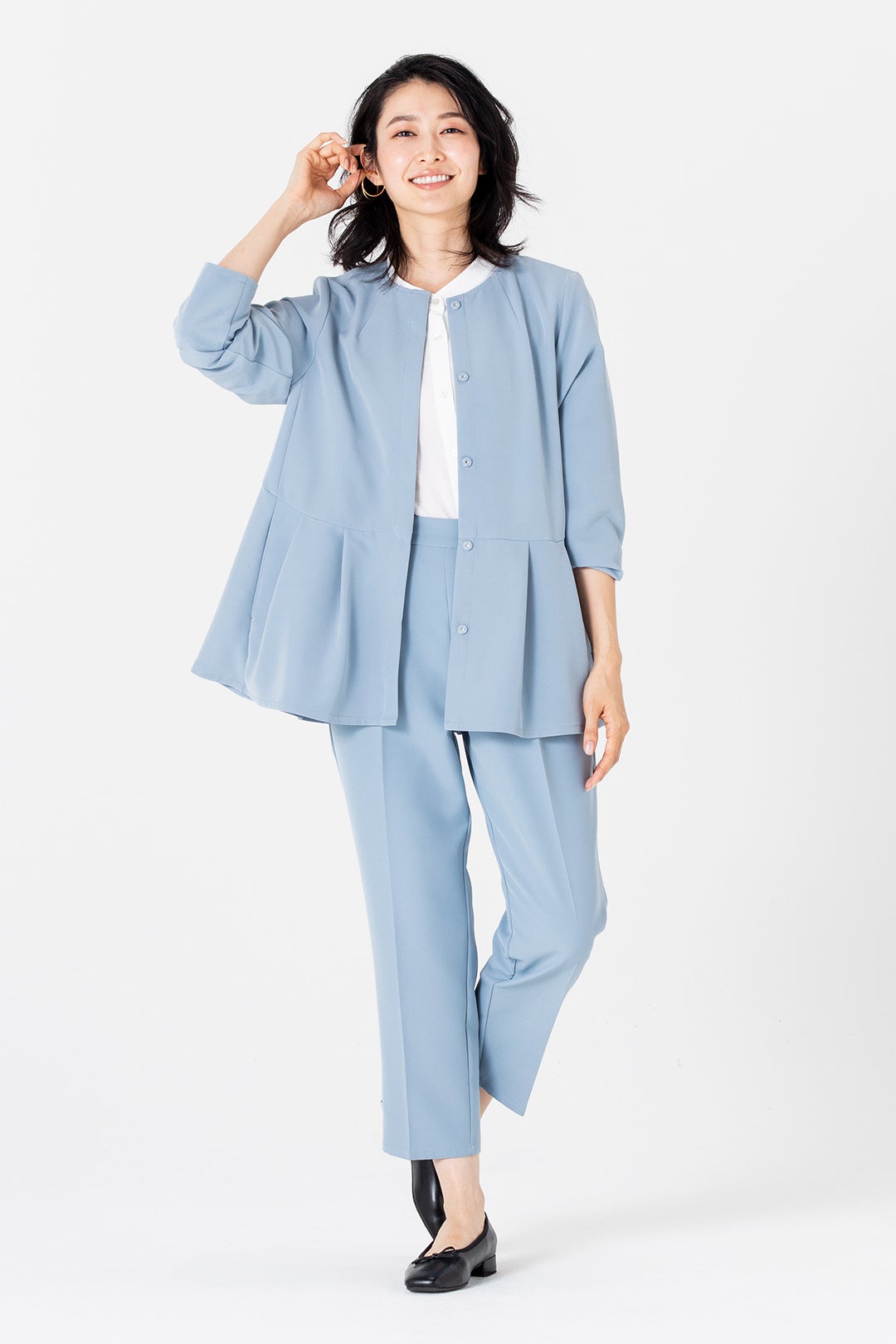オケージョンシーンから日常使いまでマルチに活躍 大人気の【すごナノ撥水】よりパンツとセットで使えるペプラムジャケットが新登場