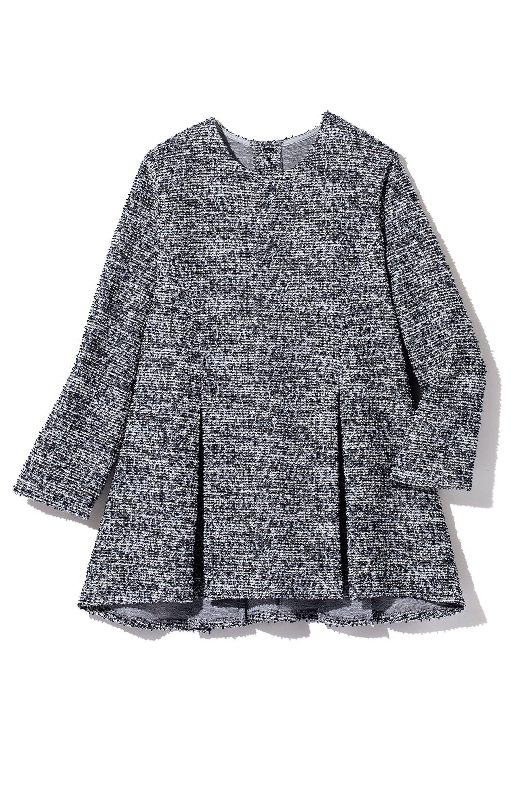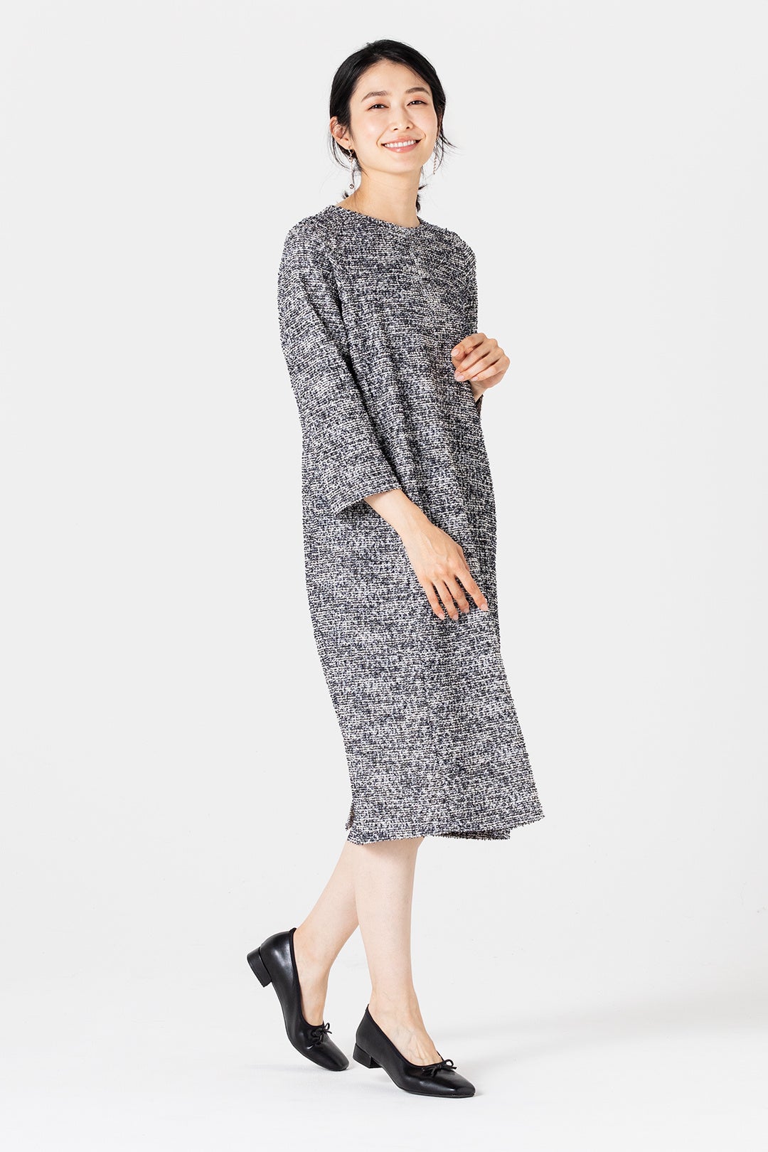 セットアップと同様にジャージ素材のツイードを使用しているので、着心地が抜群のワンピース。切り替え位置を調整することで、縦のラインが美しく見えるように設計。シルエットにこだわることで、シンプルながらも上品に、そして自然とスタイルアップしてくれるような仕様になっております。アクセサリーをプラスすれば、さらに華やかな印象に。様々なシーンで活躍すること間違いないワンピースです。