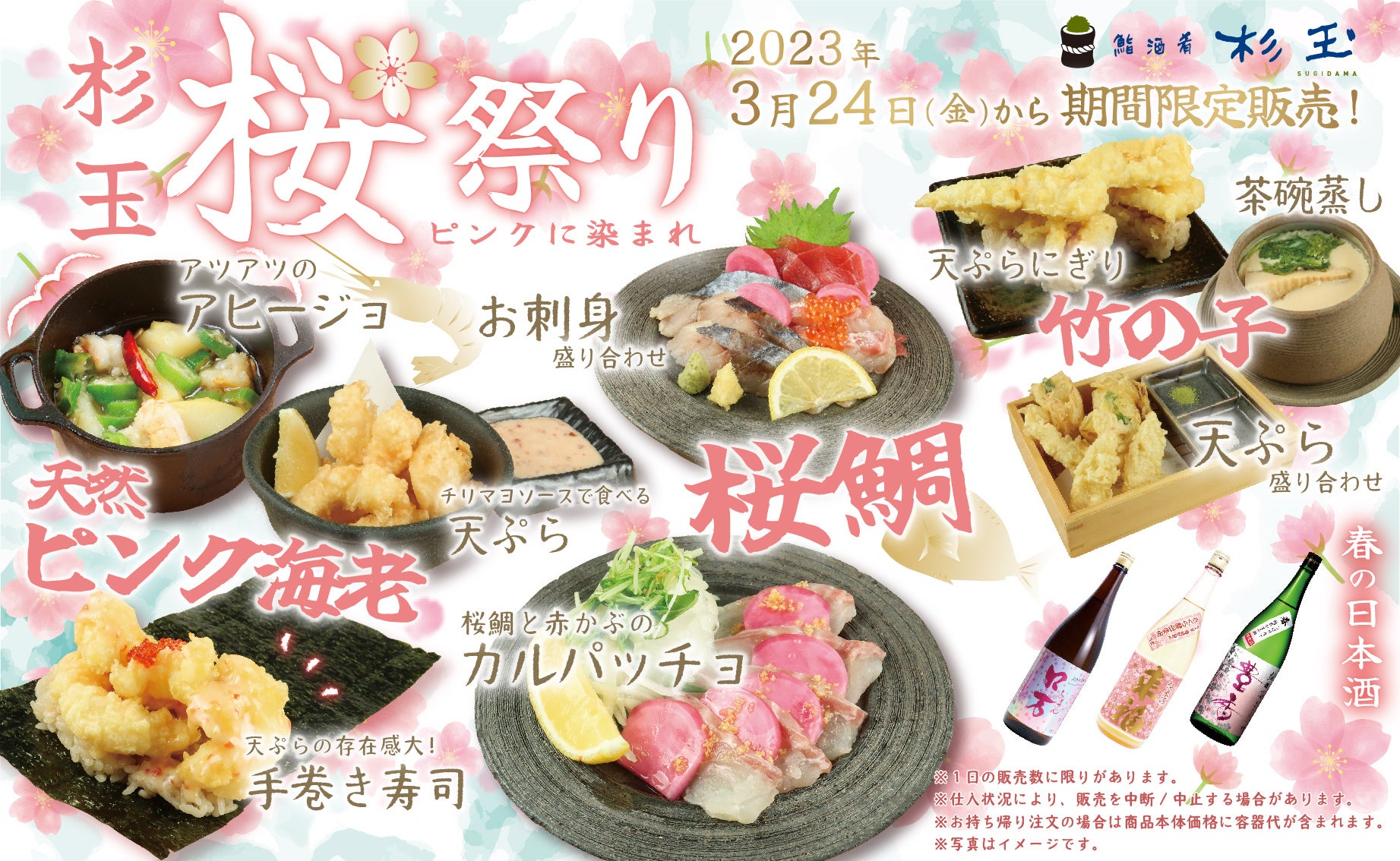 大衆寿司居酒屋「鮨 酒 肴 杉玉」“桜鯛”や“天然ピンク海老”、春らしいデザインの限定酒が登場!杉玉の『桜祭り』開催!<3月24日(金)から全国の杉玉で販売開始>