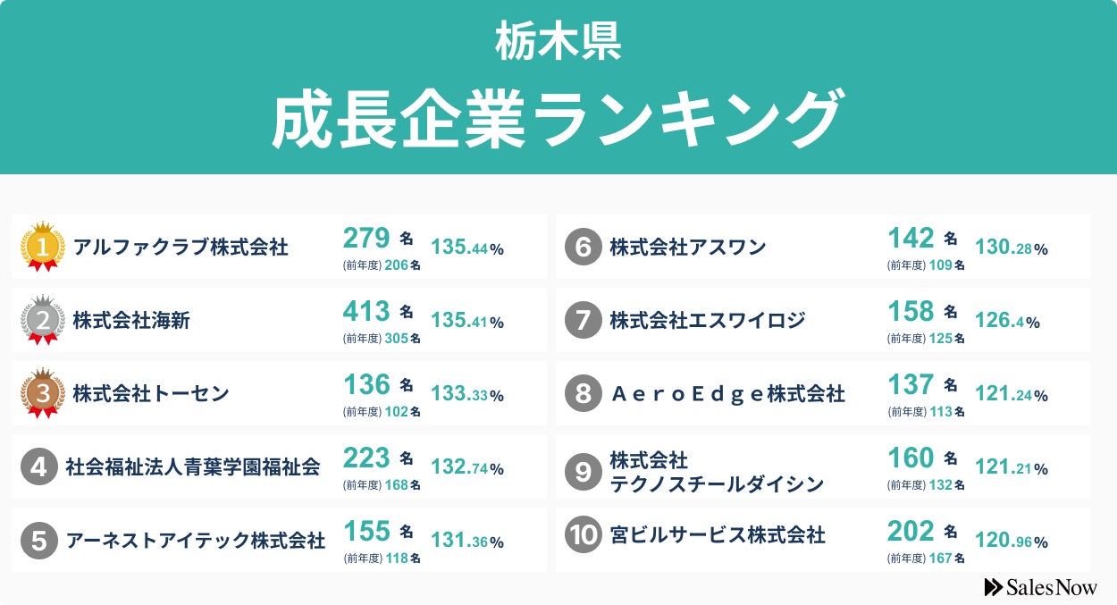 【栃木県】成長企業ランキングTOP50!/SalesNow DBレポート
