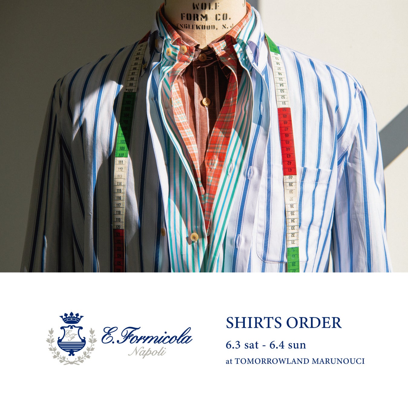 6月3日(土)から6月4日(日)の2日間、トゥモローランド 丸の内店にて、〈ERRICO FORMICORA SHIRTS ORDER〉と題し、シャツオーダー会を開催いたします。