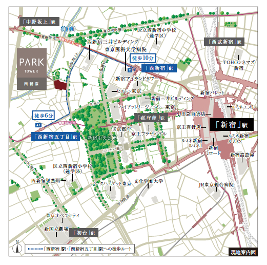 都営地下鉄大江戸線「西新宿五丁目」駅 徒歩6分 / 東京メトロ丸ノ内線「西新宿」駅 徒歩10分 /