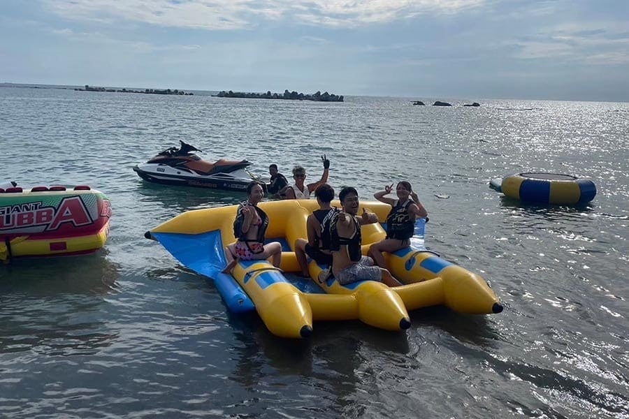 海水浴はもちろん、年齢や趣向に合わせたマリンアクティビティーもお楽しみいただけます。SUPやバナナボート、ジェットスキーなど、数種類のマリンアクティビティをリーズナブル価格でご用意しております。