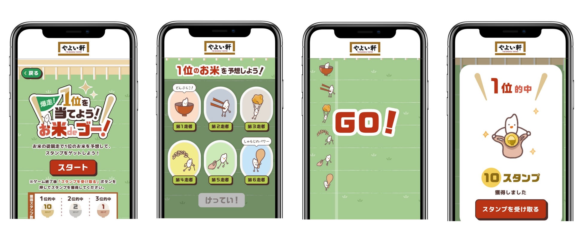 「やよい軒」公式アプリ ダウンロード数160万突破! スタンプ獲得新ミニゲーム『爆走!1位を当てよう!お米deゴー!』追加!スタンプクーポンのラインナップもリニューアル!