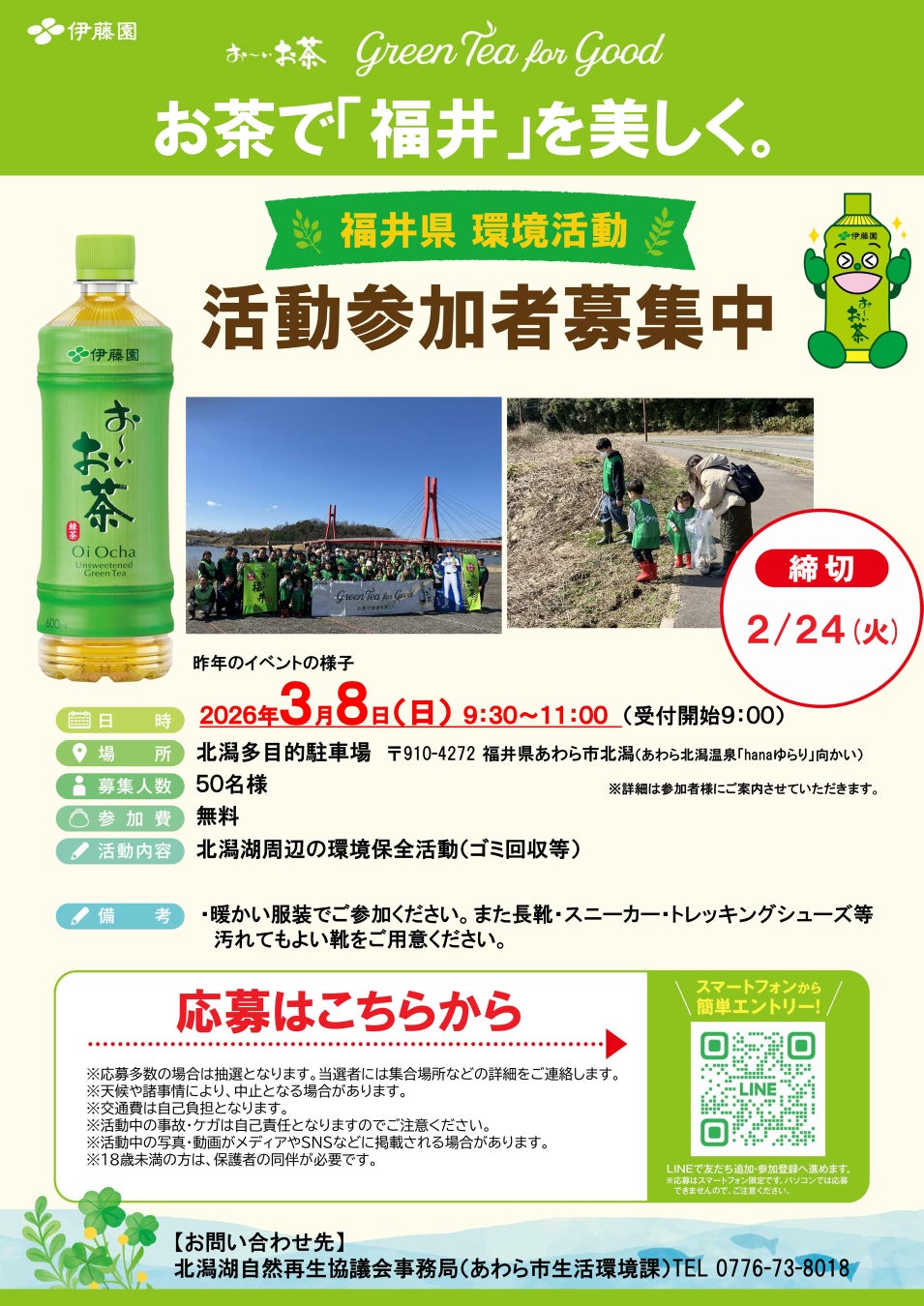 ご参加いただける人は、2月24 日(火)までに、伊藤園の公式LINE、または電話(0776-73-8018)からのお申し込みが必要です。